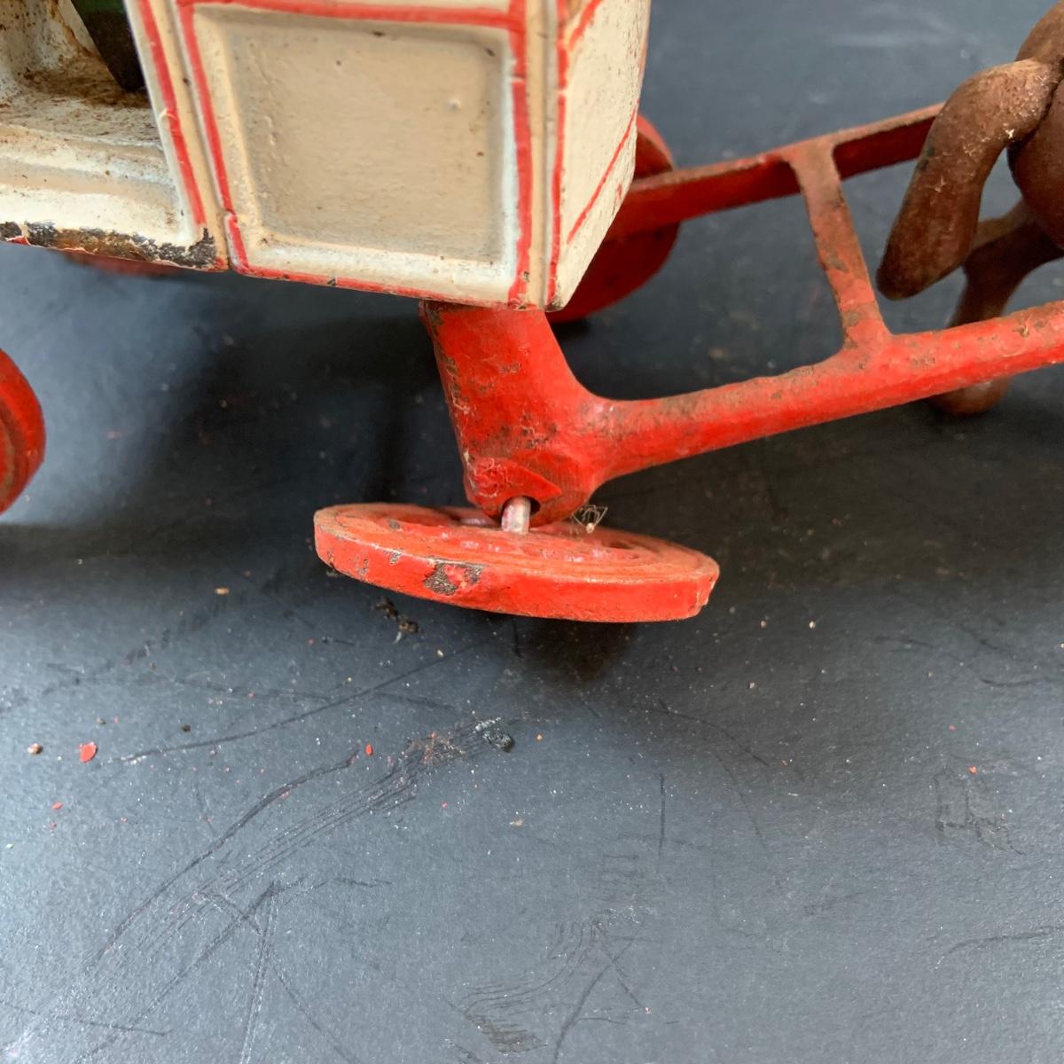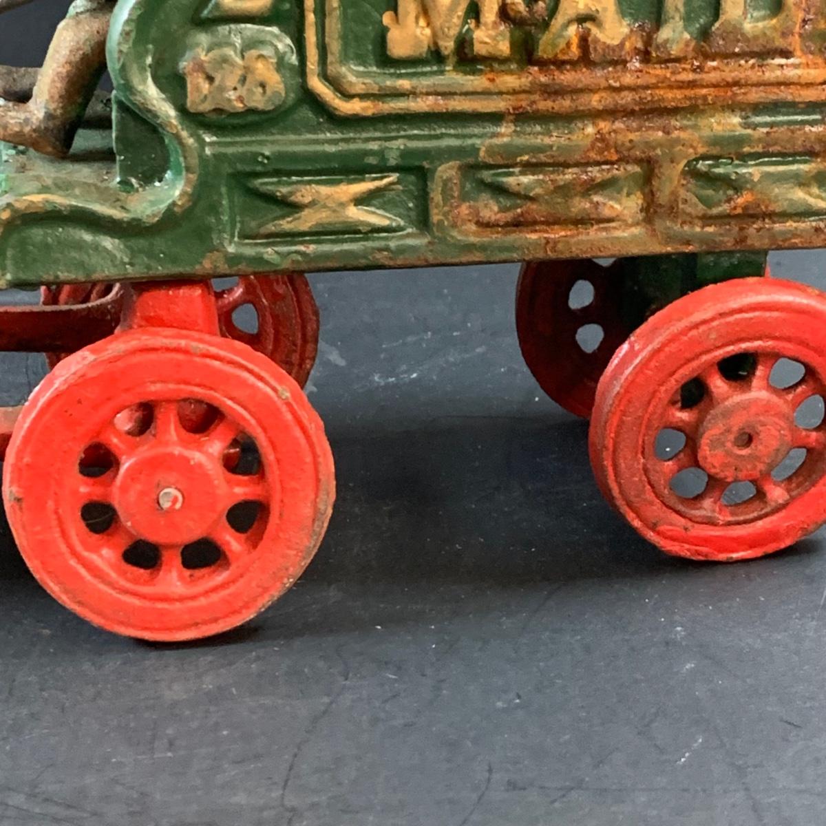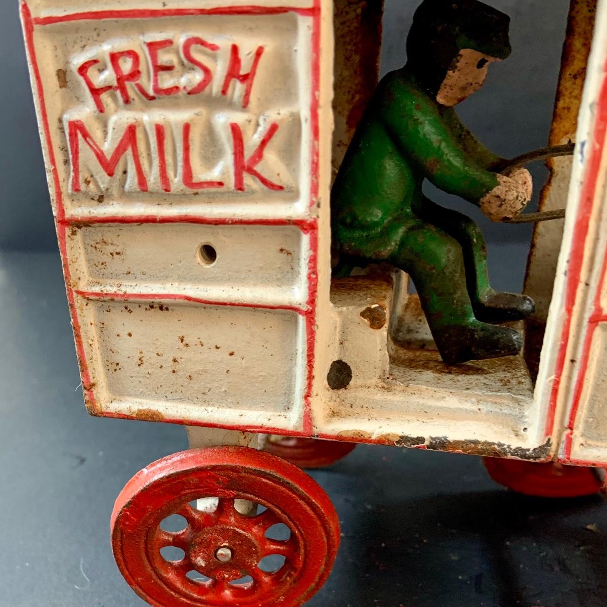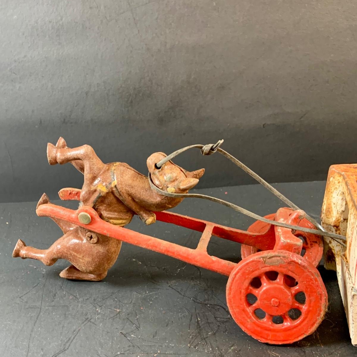LOT 74: Vintage Cast Iron Horse Drawn Milk Carriage and US Mail Truck