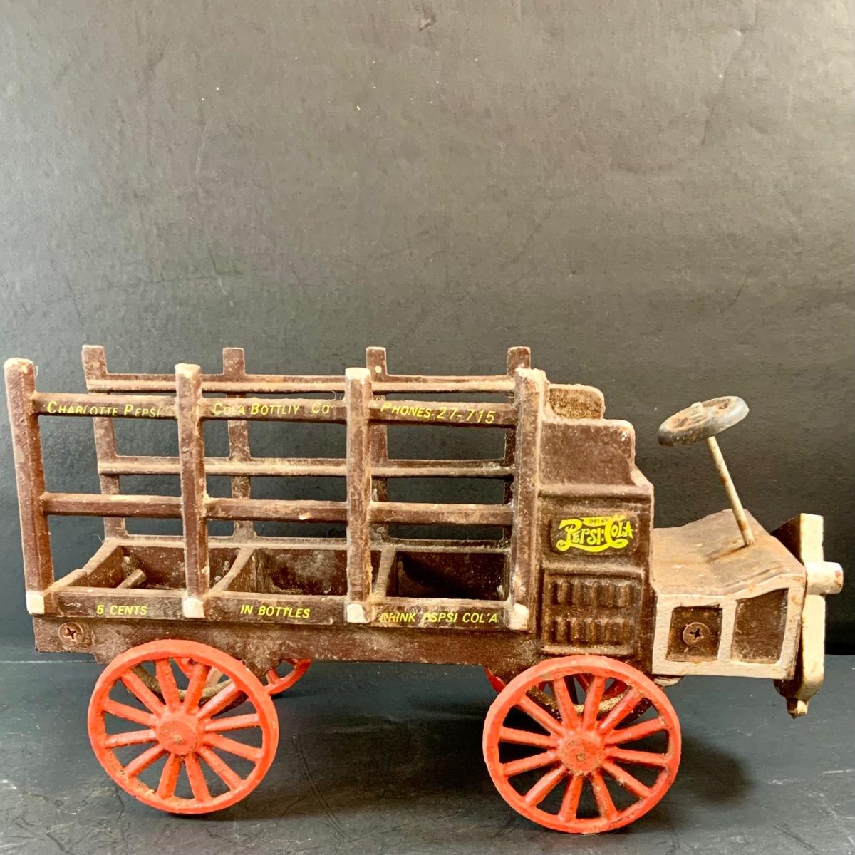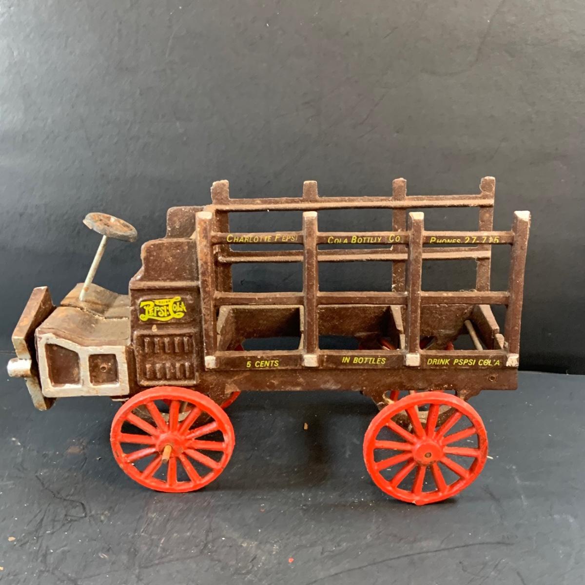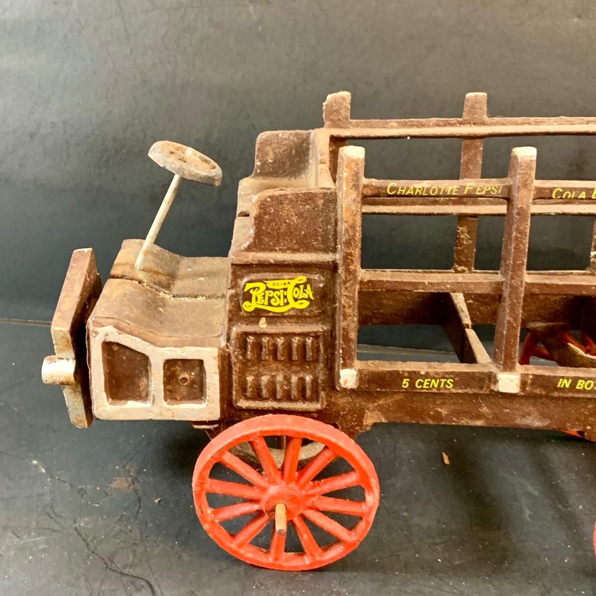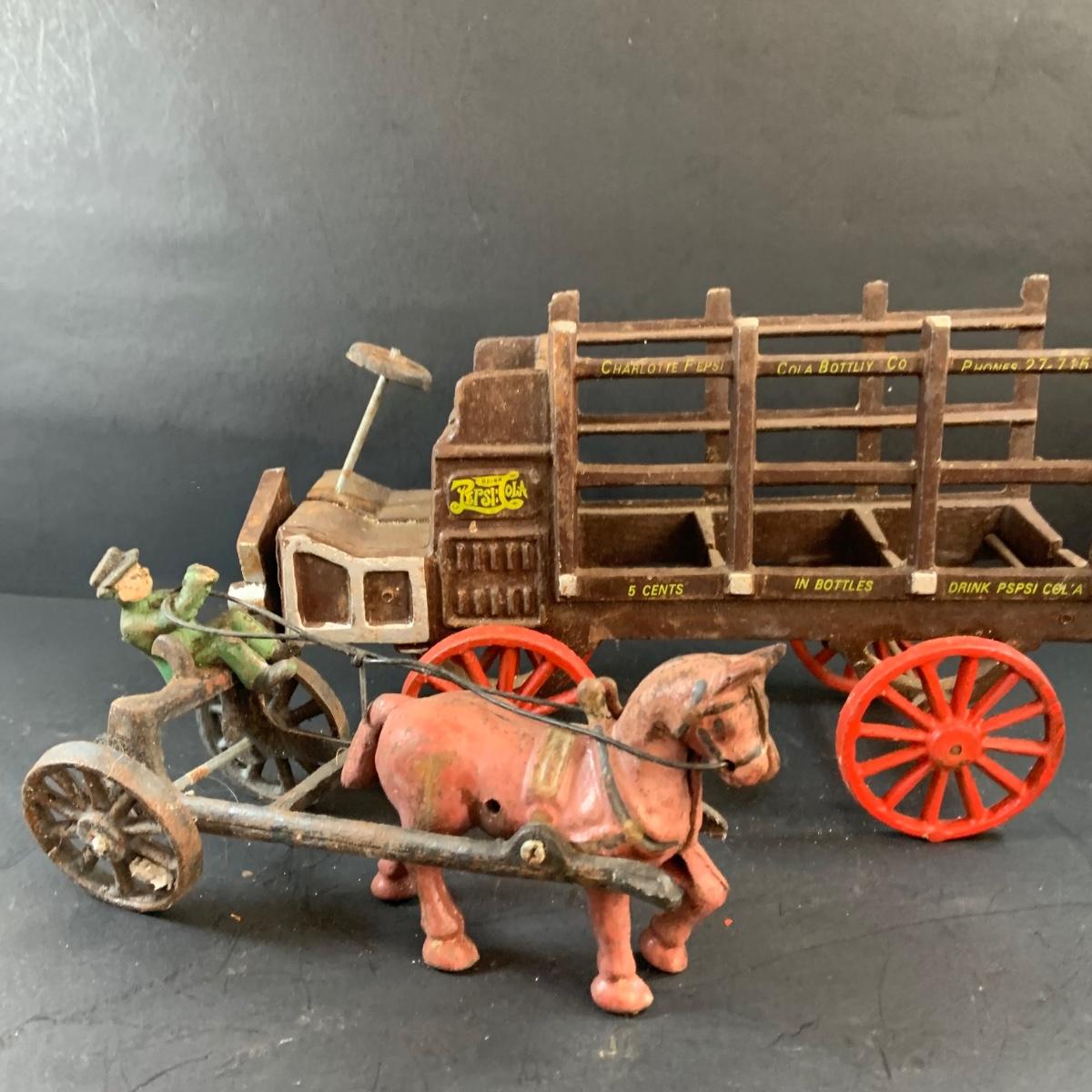 LOT 75: Vintage Cast Iron Pepsi Truck and Horse and Driver