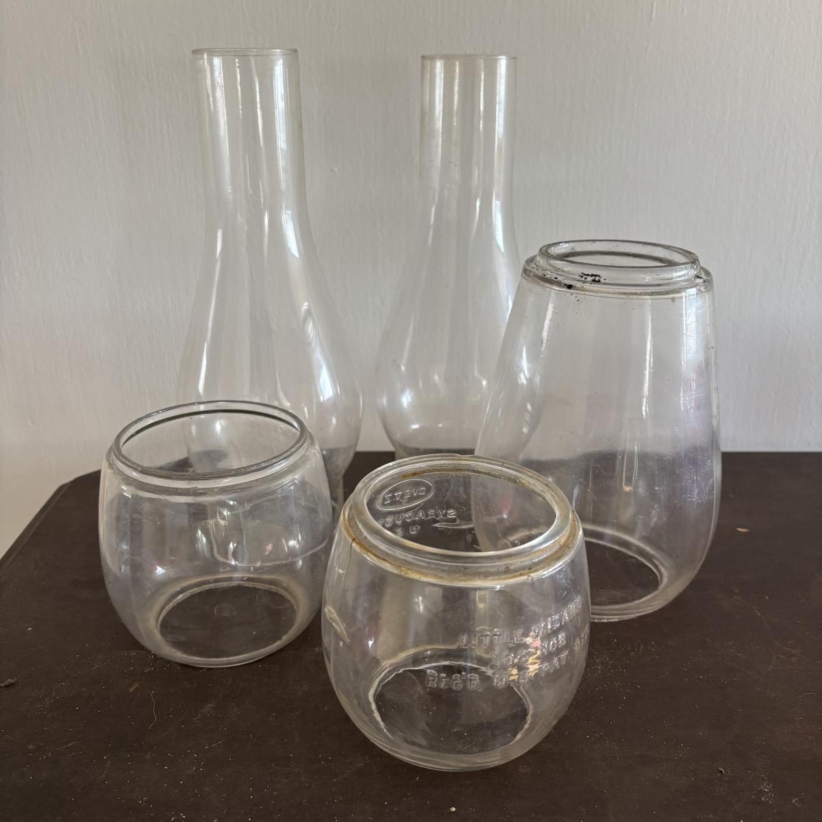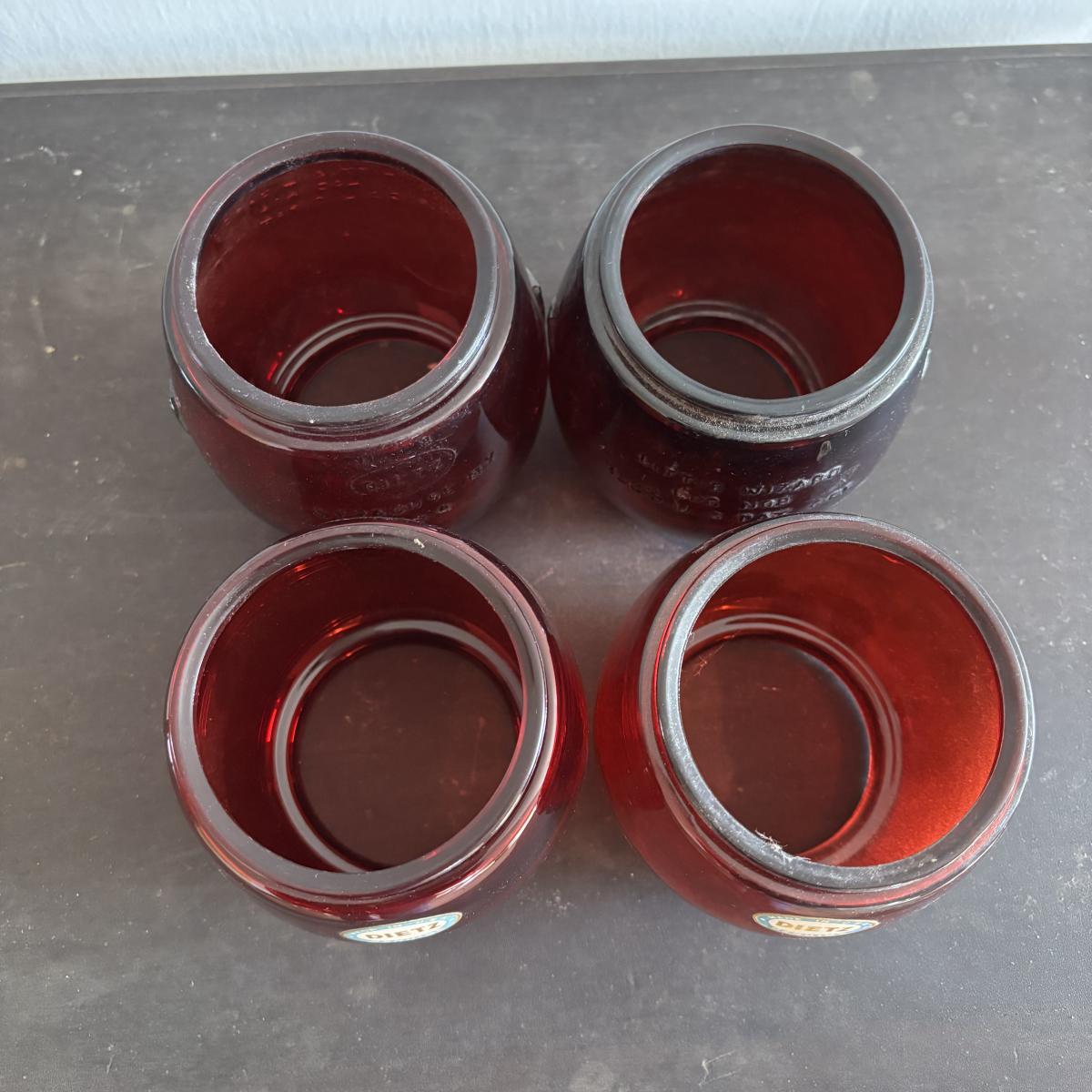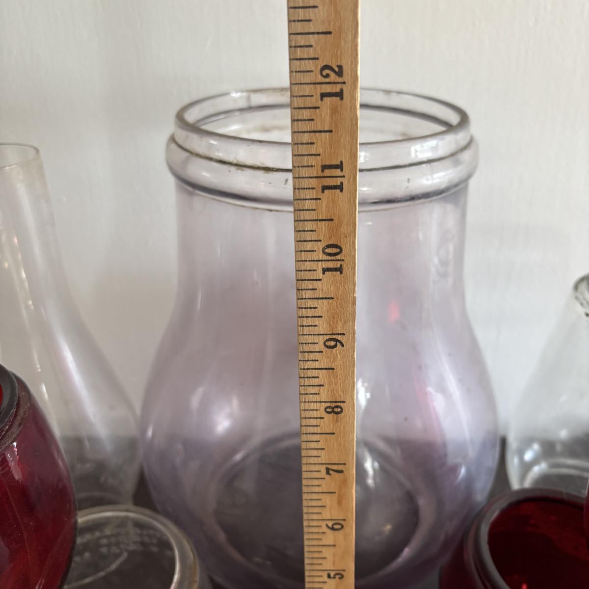 LOT 82: Vintage Oil Lanterns Globes: Unmarked Railroad, Clear & Red Dietz