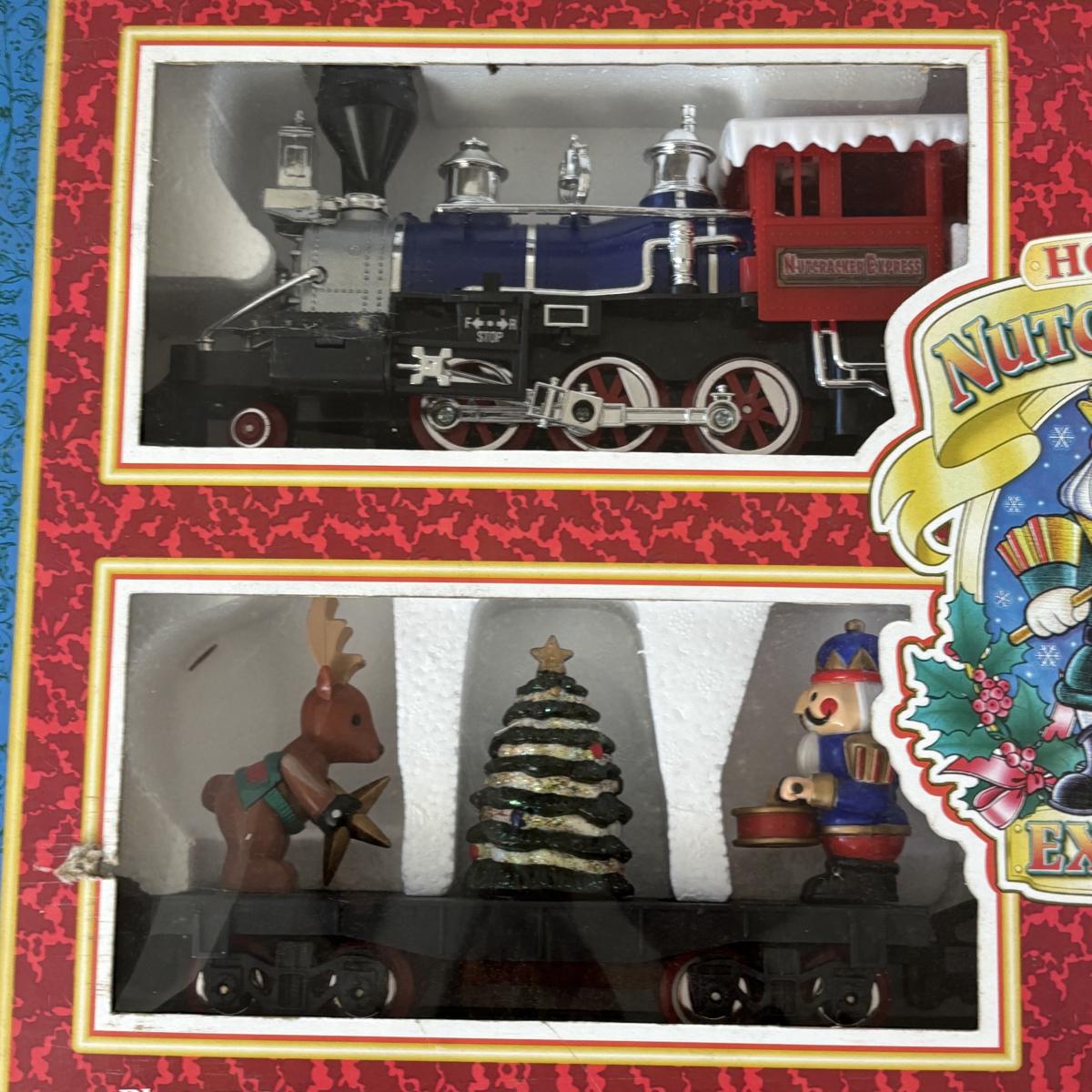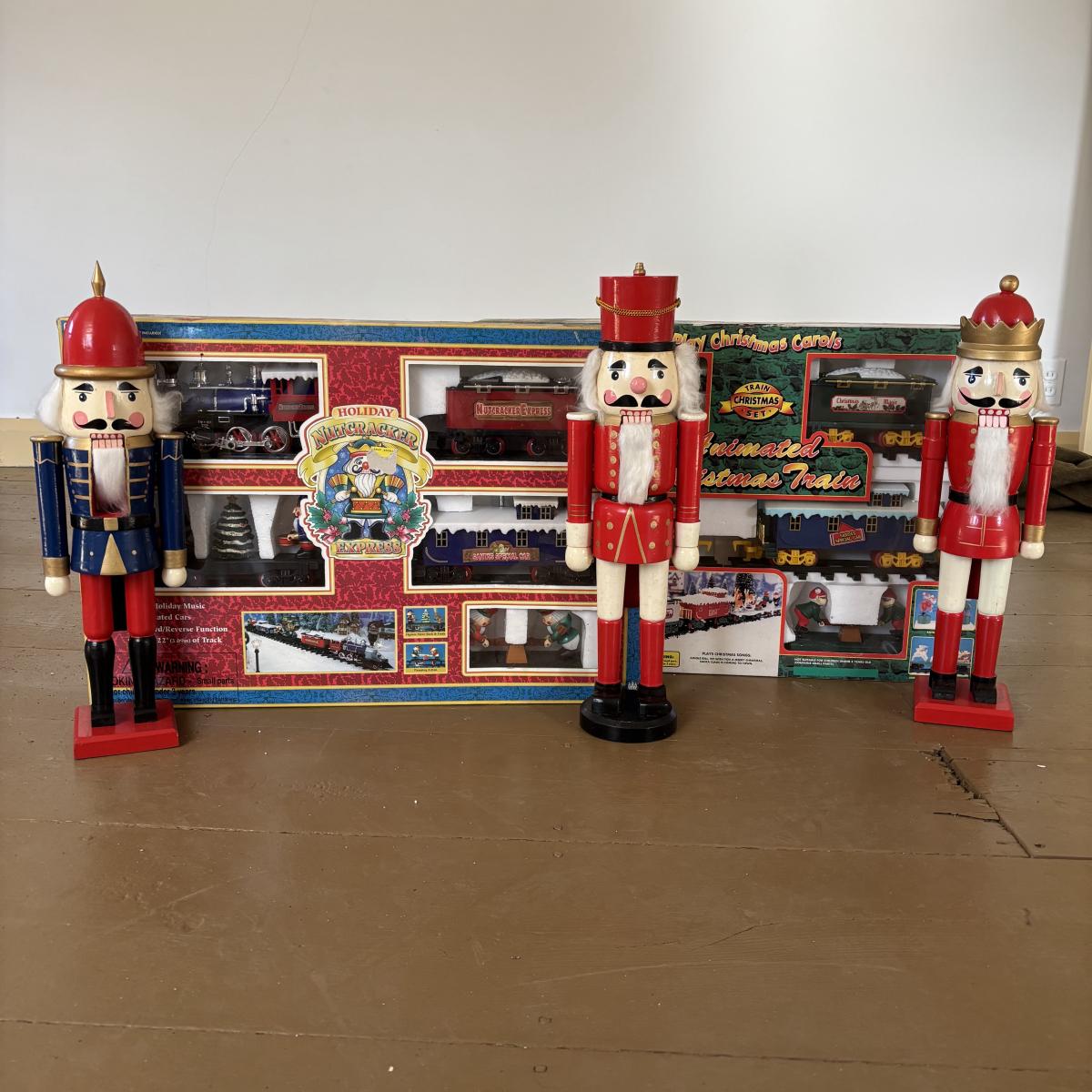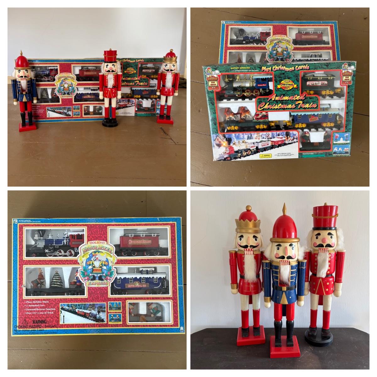 LOT 85: North Pole Toy Shop Animated Christmas Train, Holiday Nutcracker Train Set (unopened) & 3-Wooden Nutcrackers