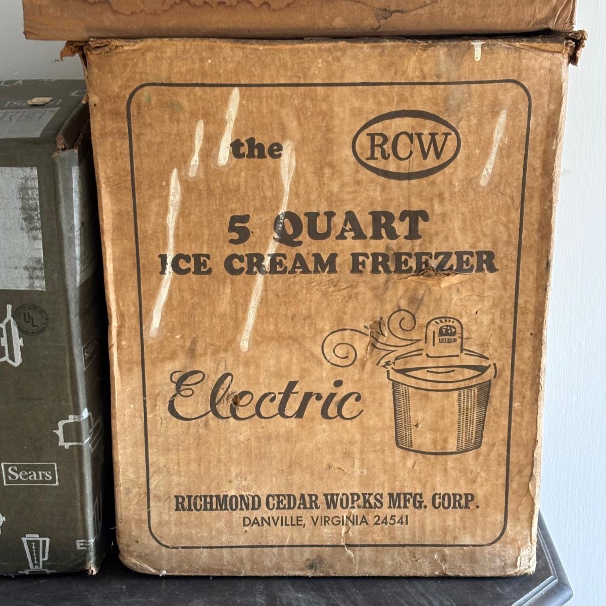 LOT 87: Vintage Appliances w/Original Boxes: Richmond Cedar Works Ice Cream Freezer, Nescafe Coffee Maker & Sears Kenmore Bleander