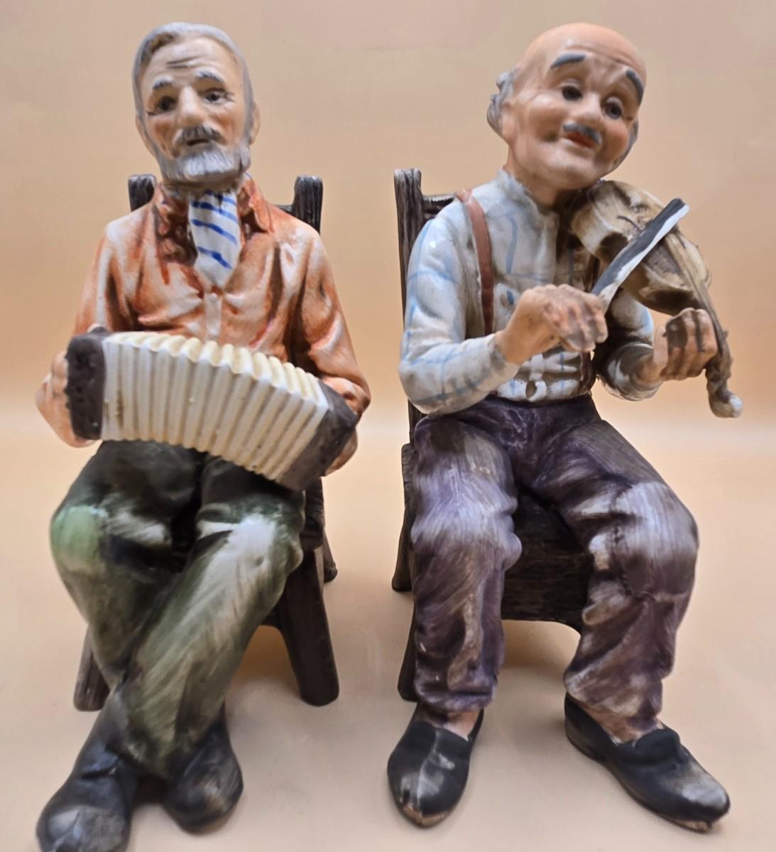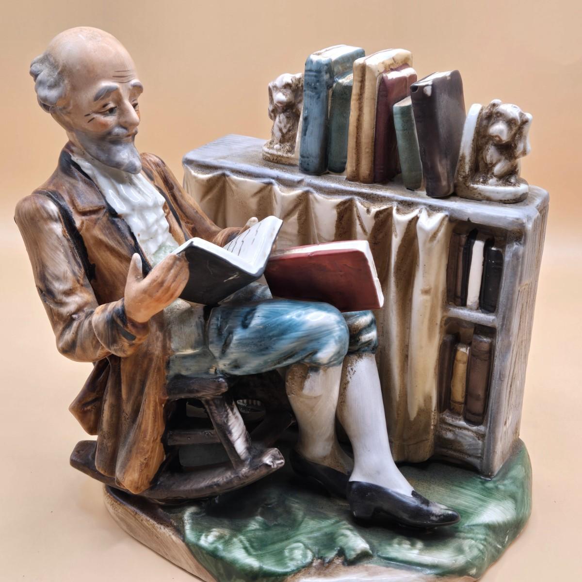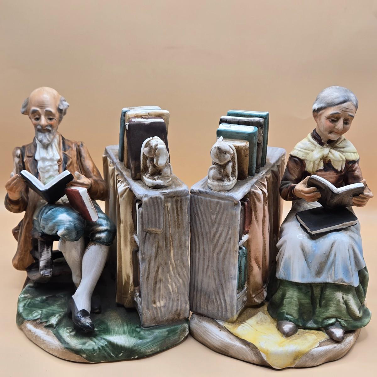 LOT 163: Norleans Japan Elderly Couple Reading Books in Rocking Chairs Bookends, & Instrument Playing Figures