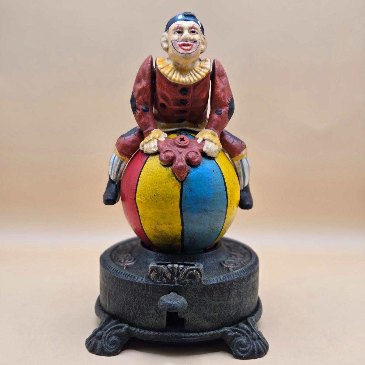 LOT 170: " Spinning Acrobat Clown on Globe" Cast Iron Mechanical Bank