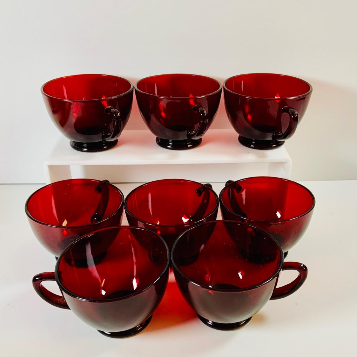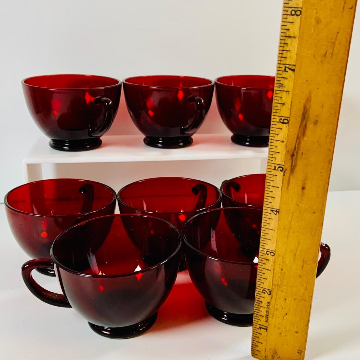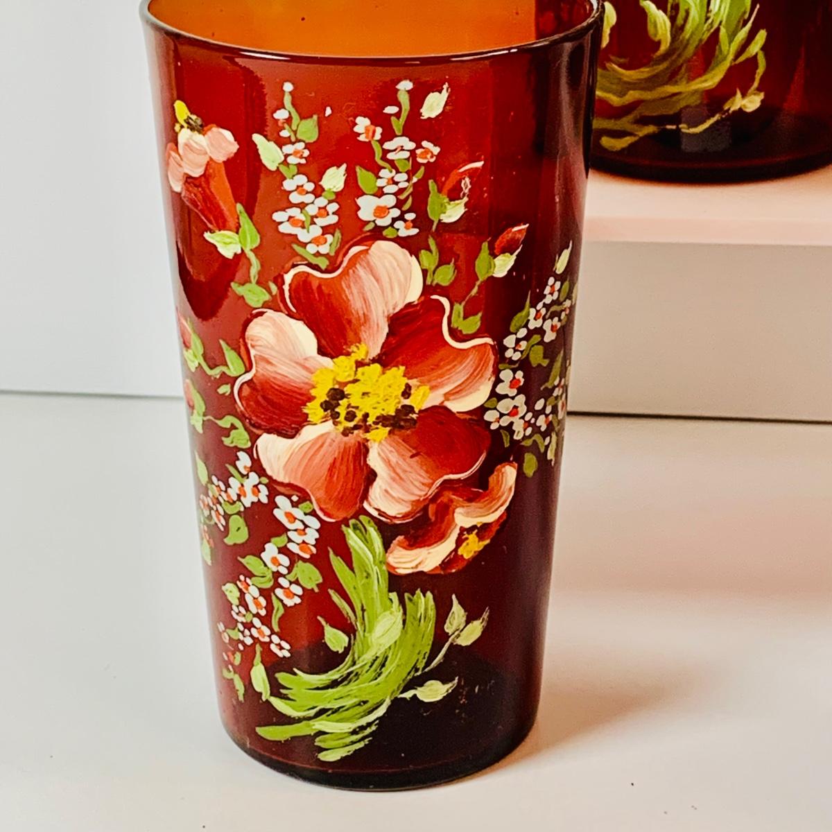 LOT 193: Beautiful Hand Painted Cranberry Glass Tumblers, Cranberry Glass Cups and Plate