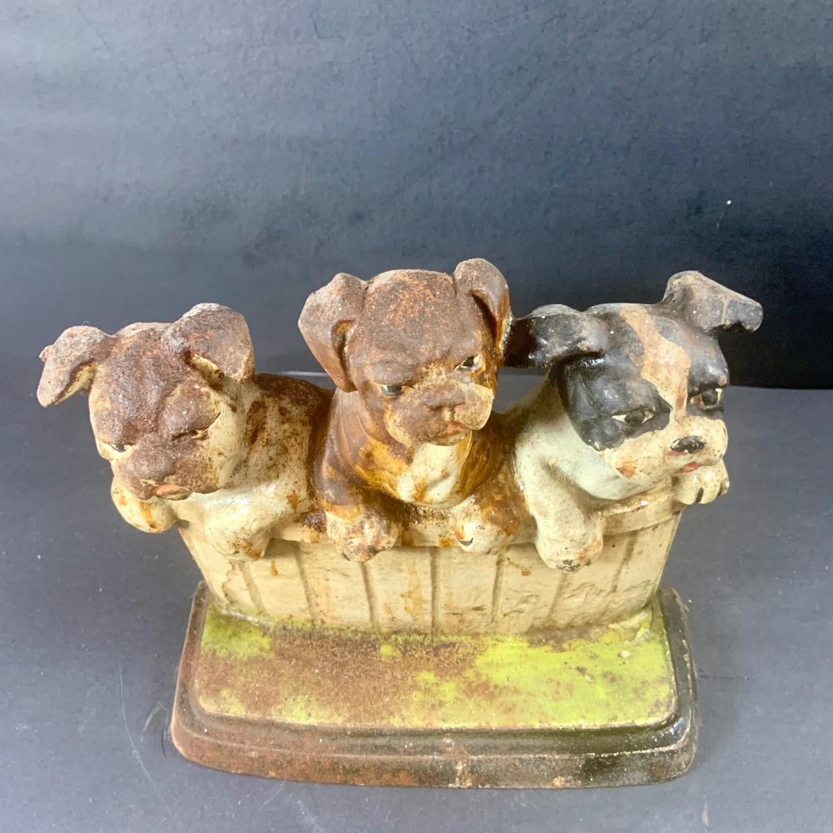 LOT 196: Cast Iron Bulldog Puppies Door Stop by M. Rosenstein 1932