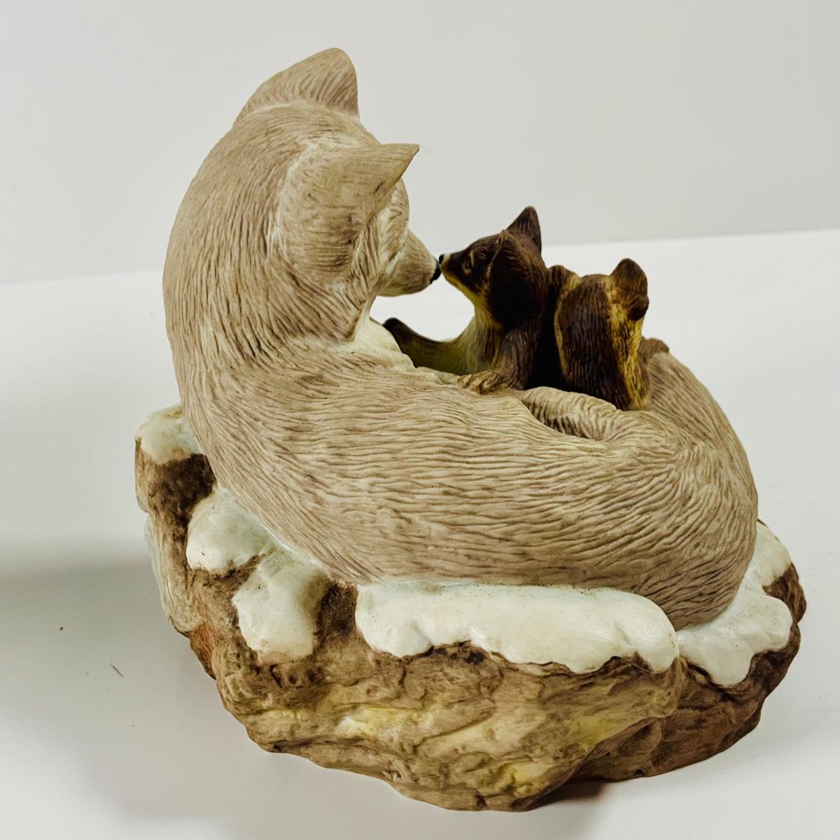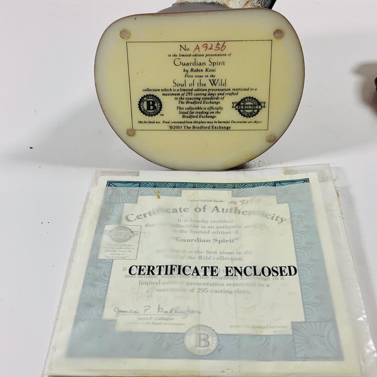 LOT 215: Beautiful Wolf Figurines- Bradford Exchange Number "Guardian Spirit" and Lenox 1991 "Keeping Warm"