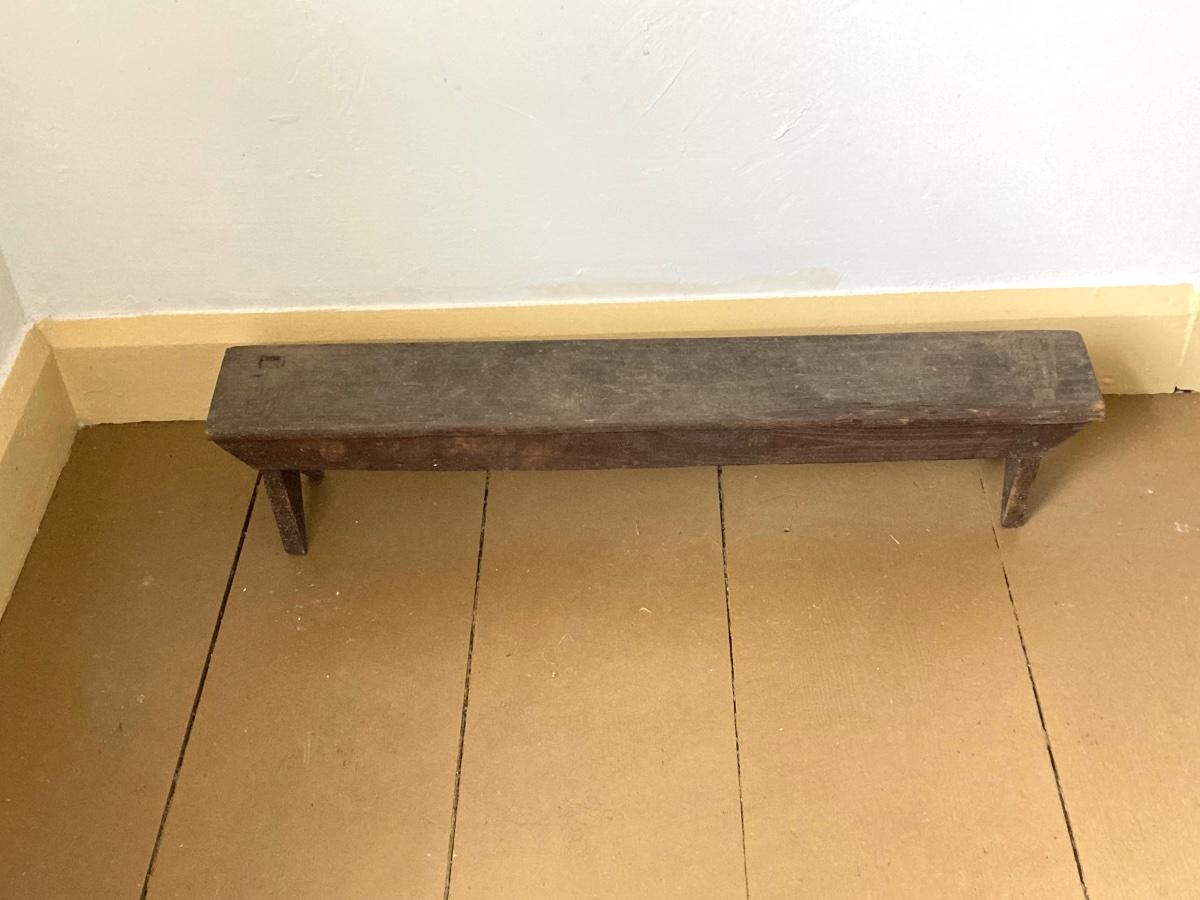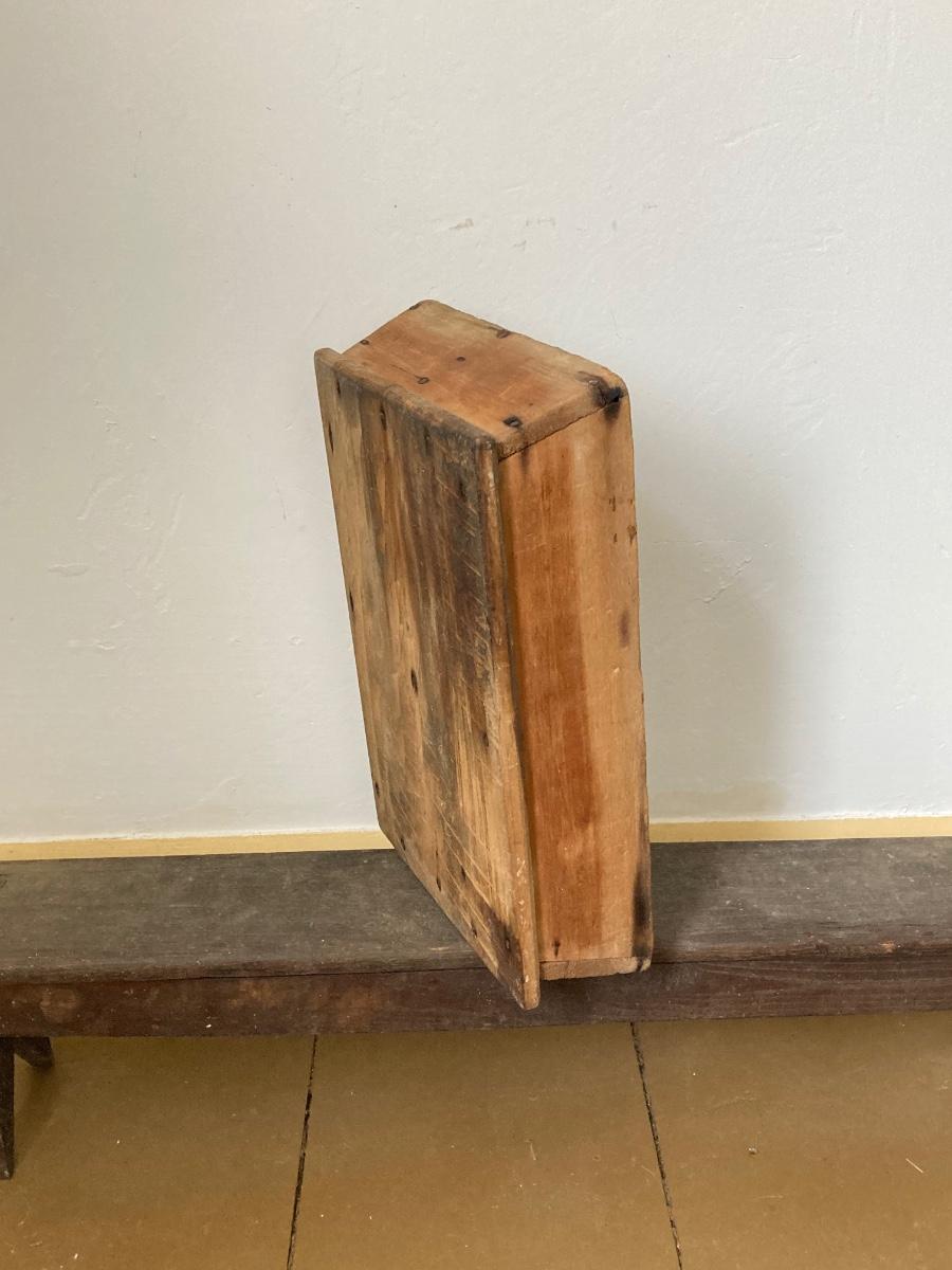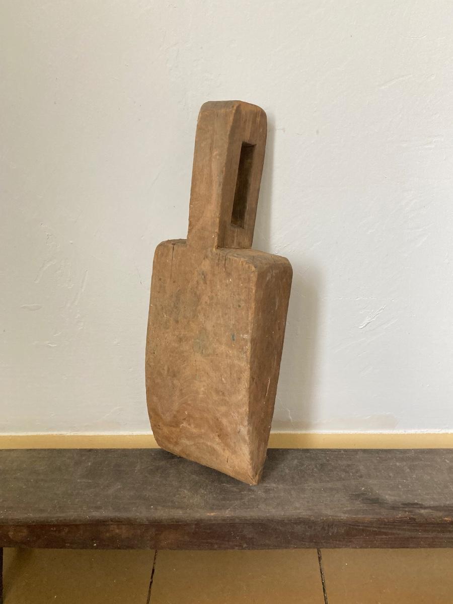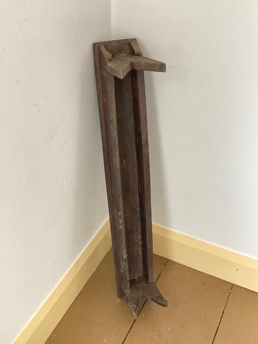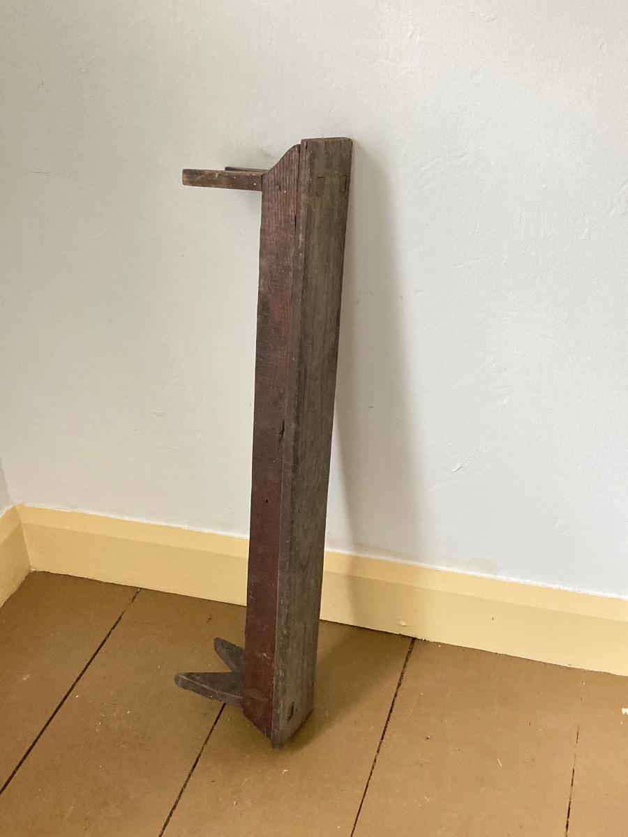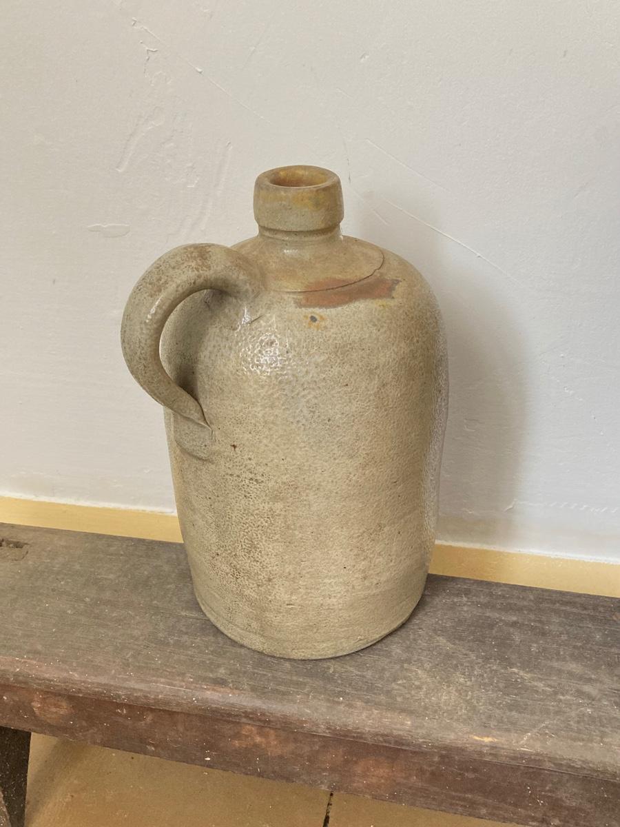 LOT 244: Primitive Collection - Large Wooden Scoop, Divided Box with Handle, Long Shelf and Pottery Jug