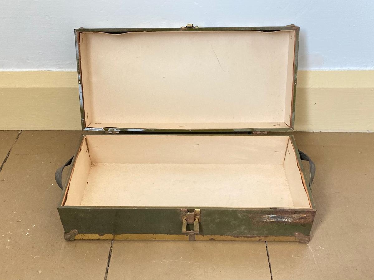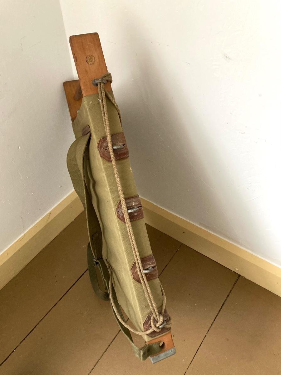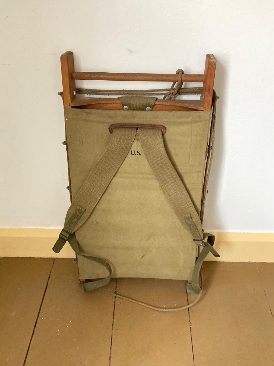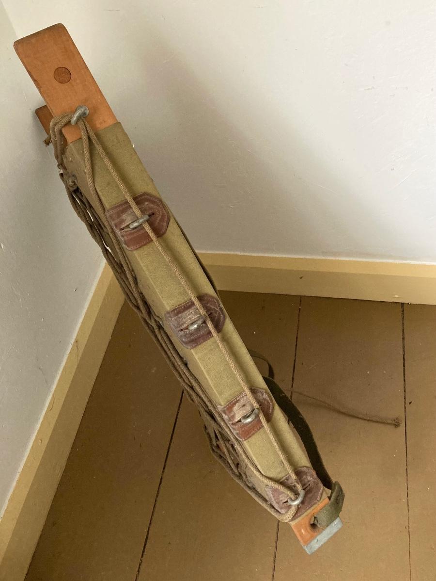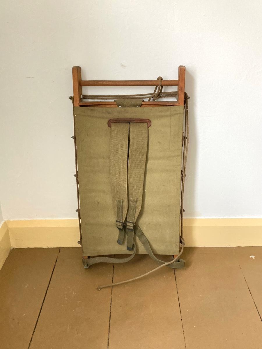 LOT 245: Vintage Military Collection - Pack Board Ladder, G.I. Type Small Foot Locker and Canvas Belt