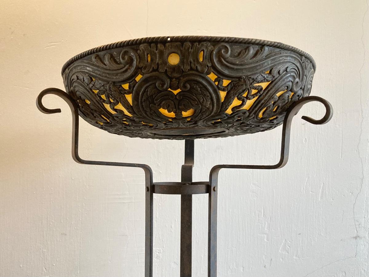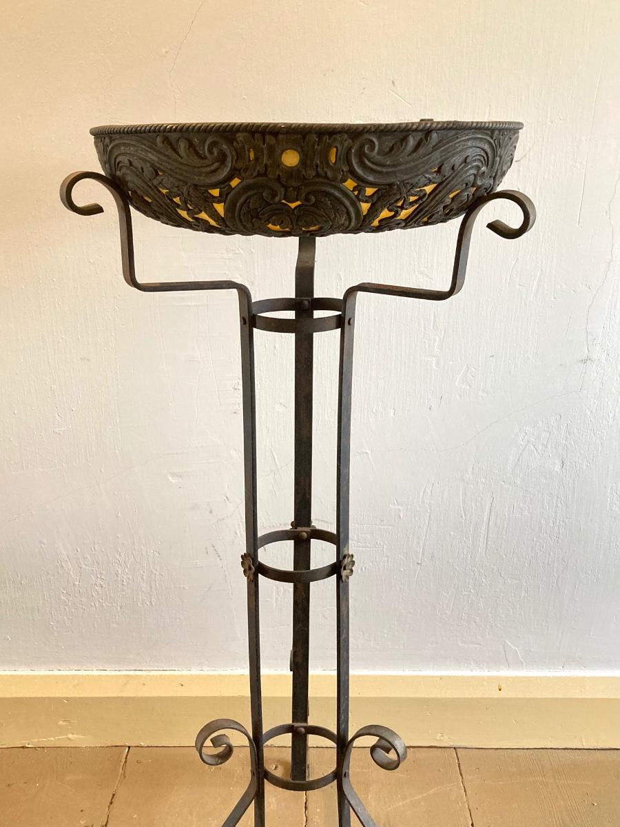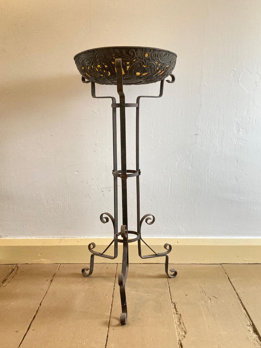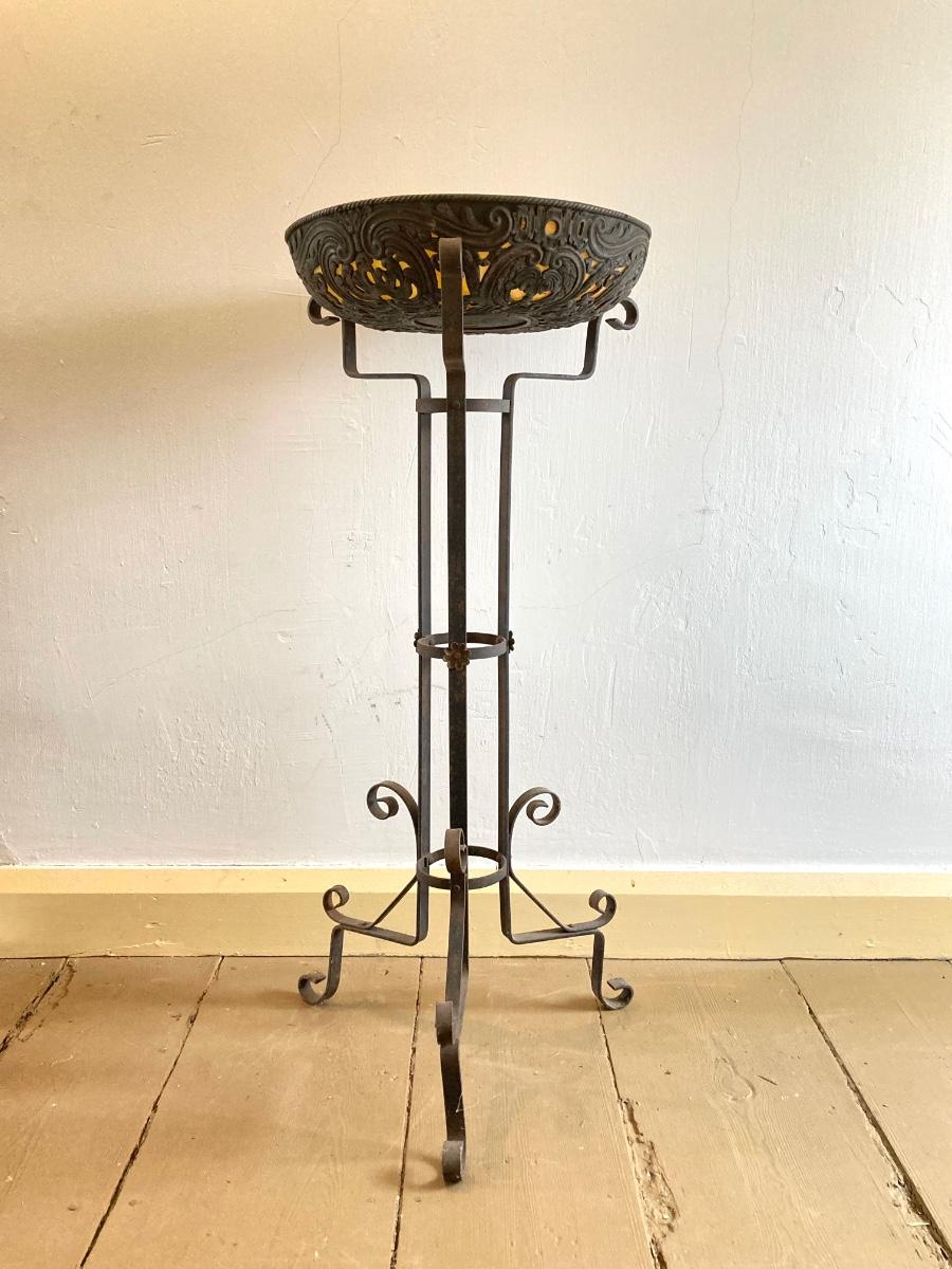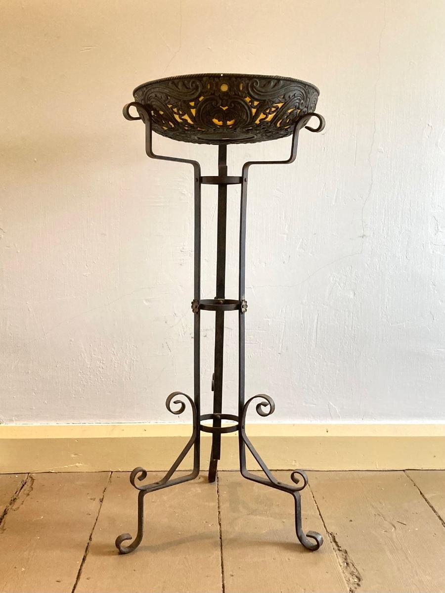 LOT 252: Vintage Plant Stand with Ornate Planter / Bowl