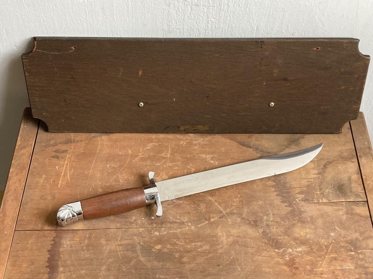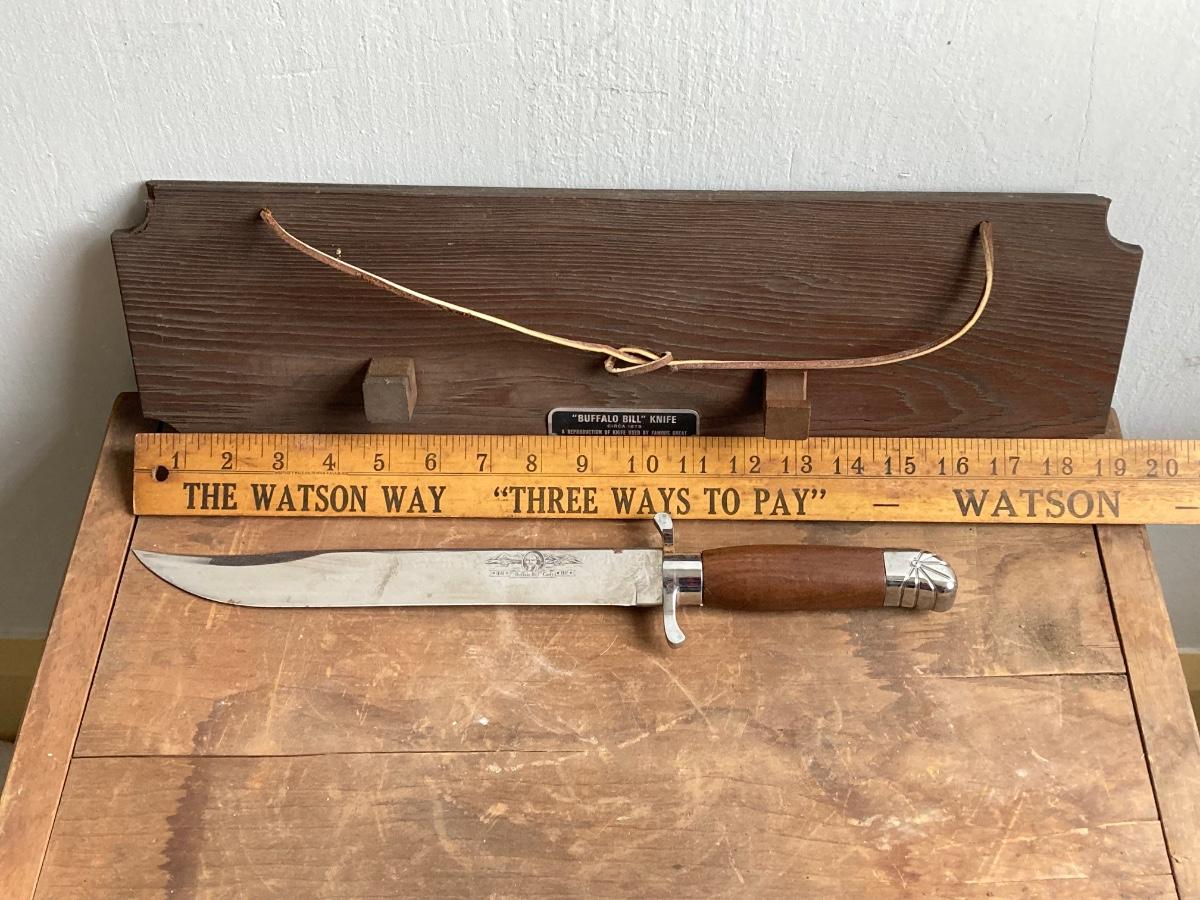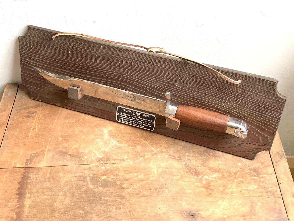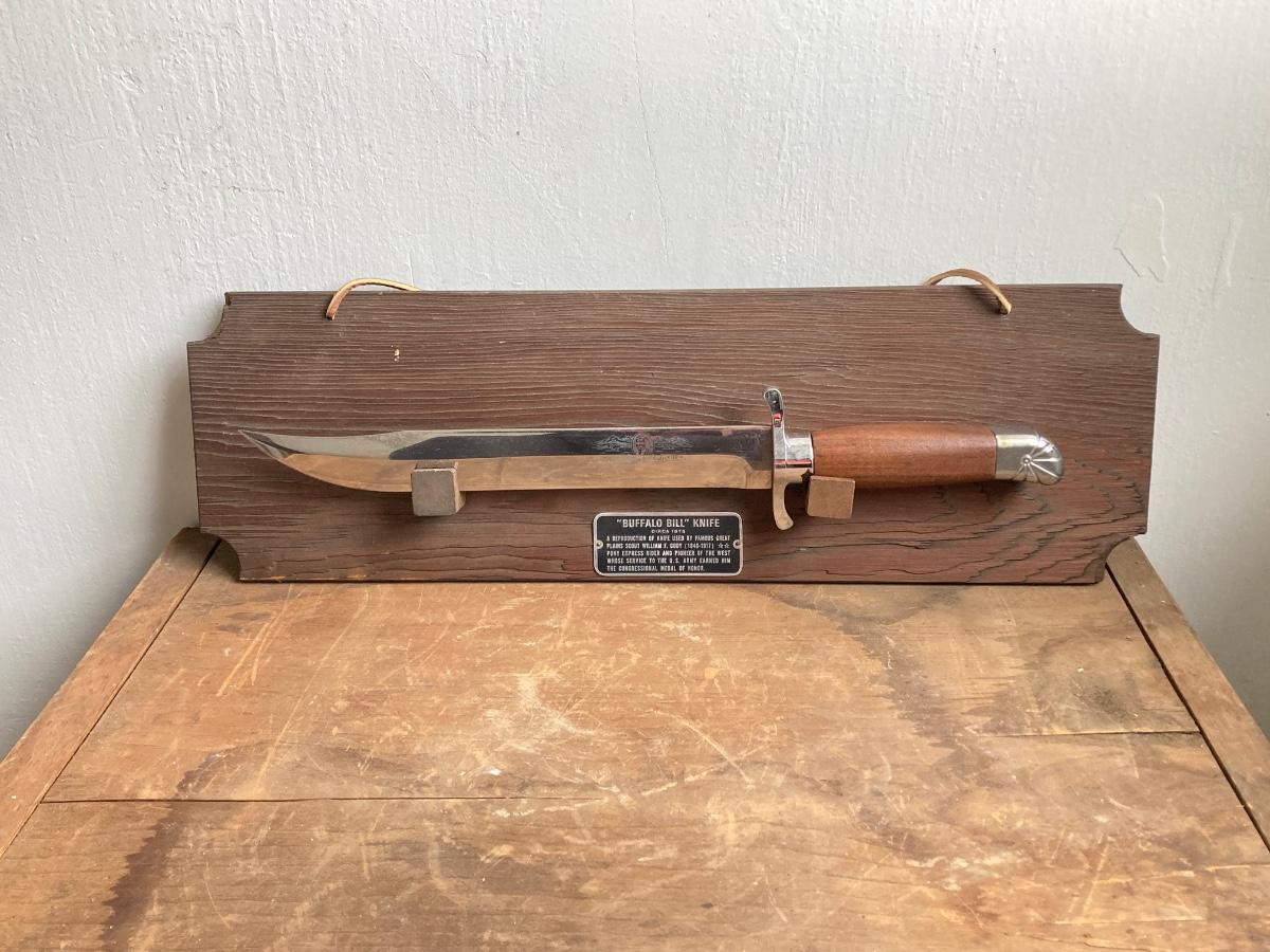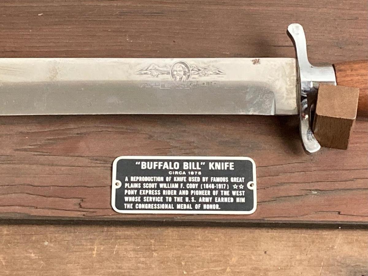 LOT 253: "Buffalo Bill" Knife - William F. Cody Reproduction Knife by Carvel Hall and Wall Display