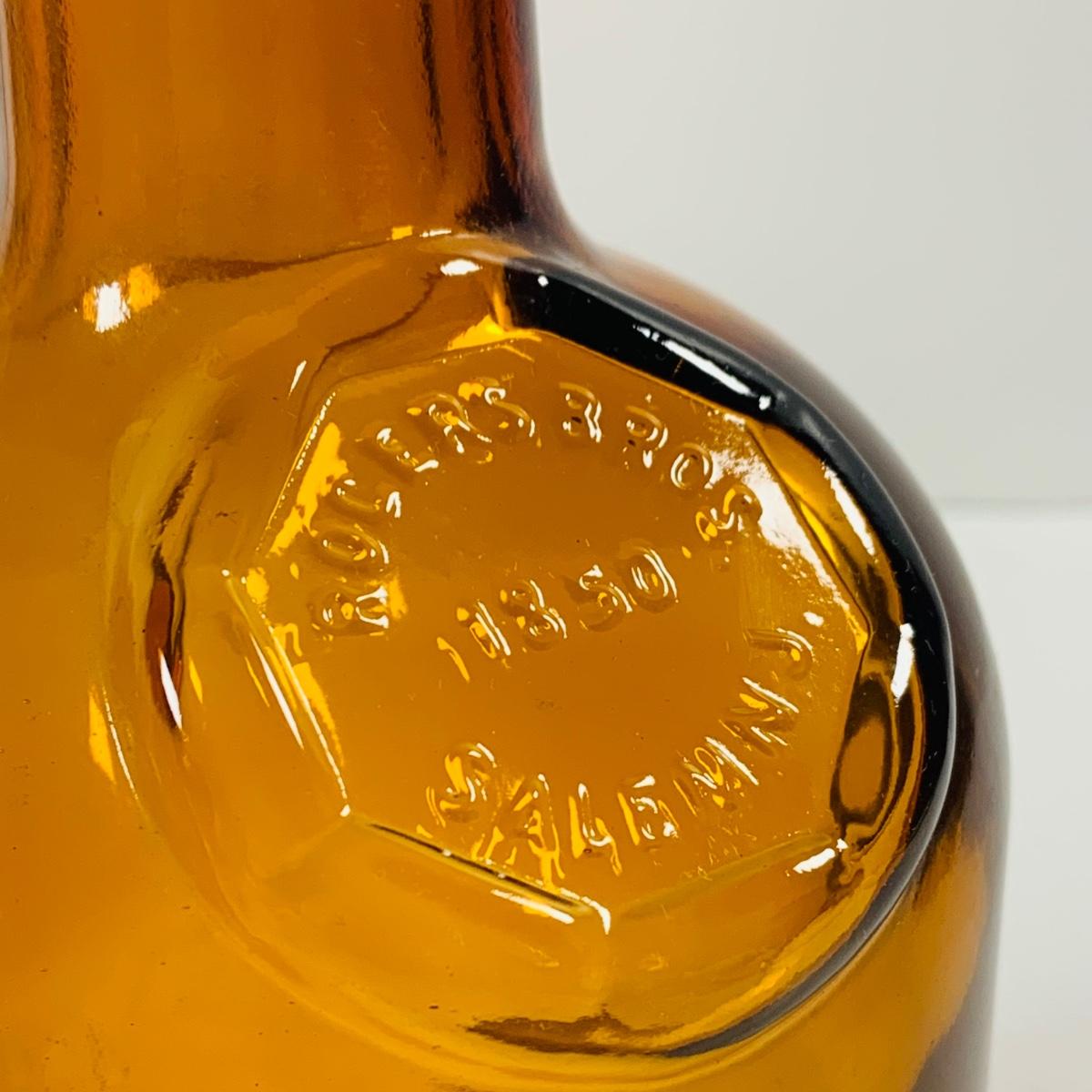 LOT 279: Collection of Vintage/Antique Amber Glass Bottles Including Rogers Bros - Salem, NJ - 1850, and Glassboro 1850 and More