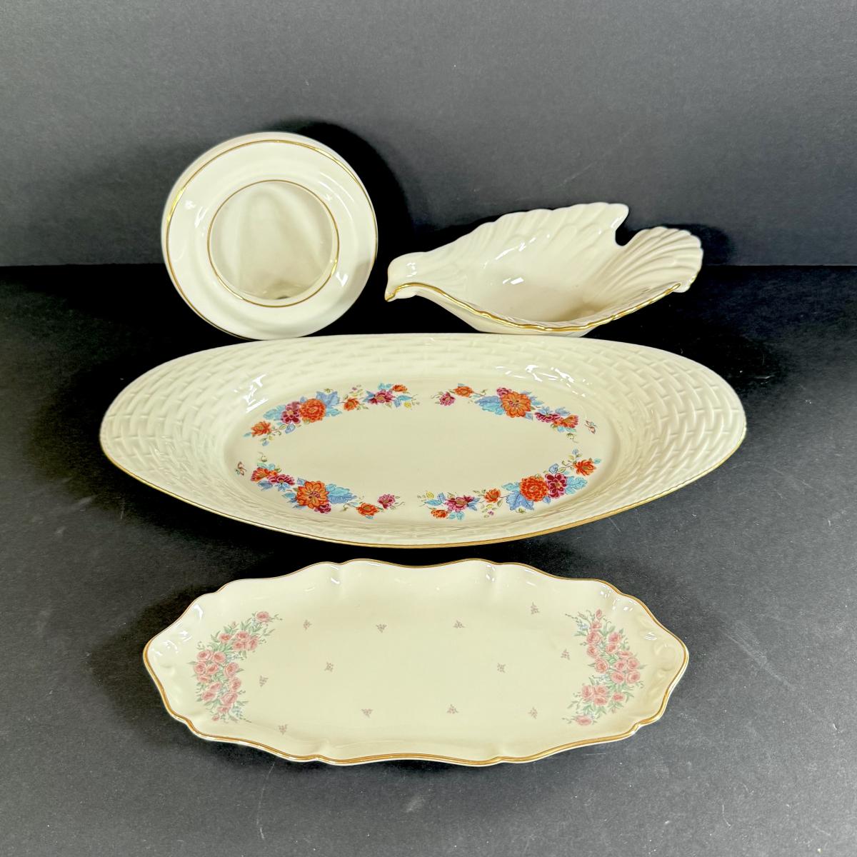 LOT 9D: Lenox Collection: Round Photo Frame, Dove Dish & Small Floral Platters