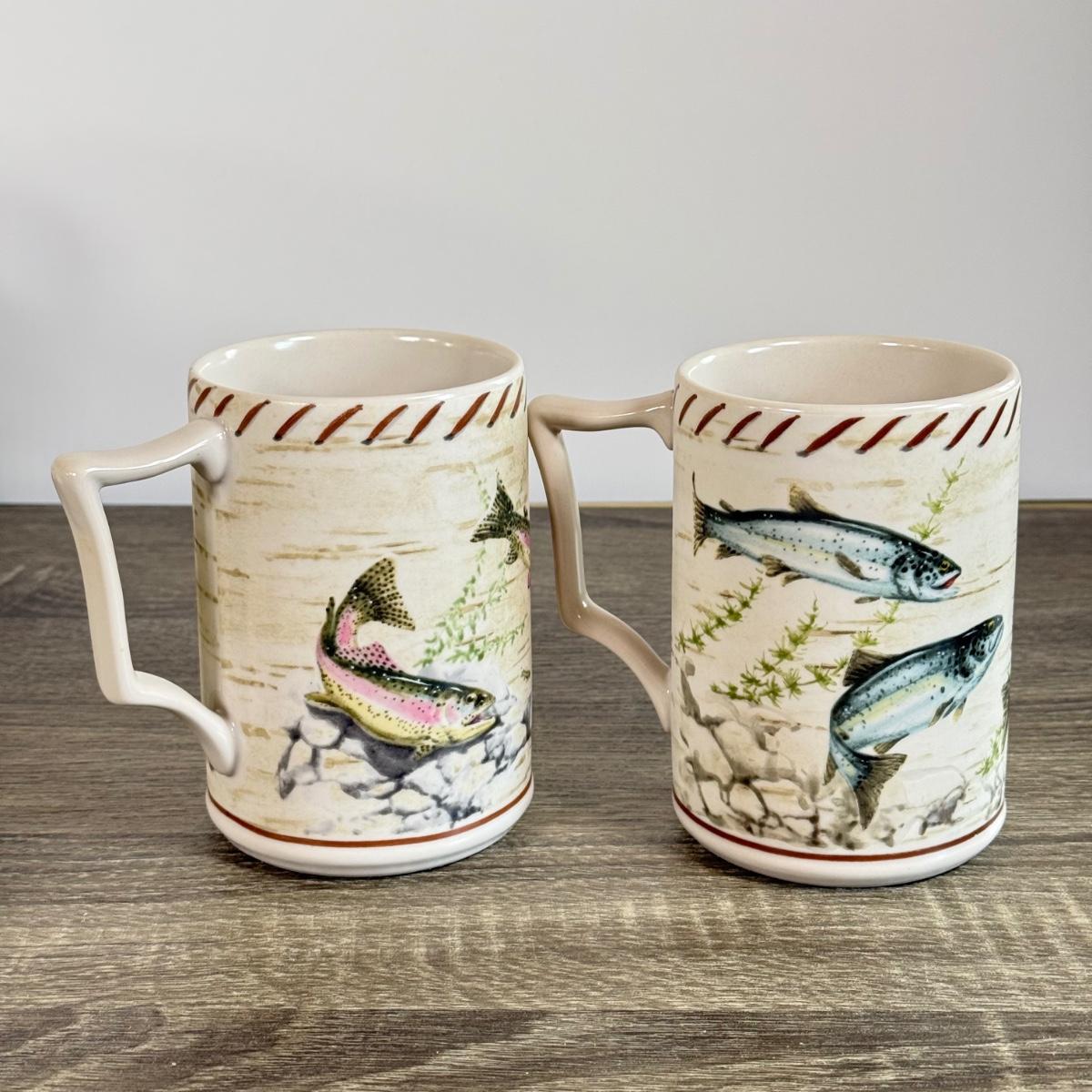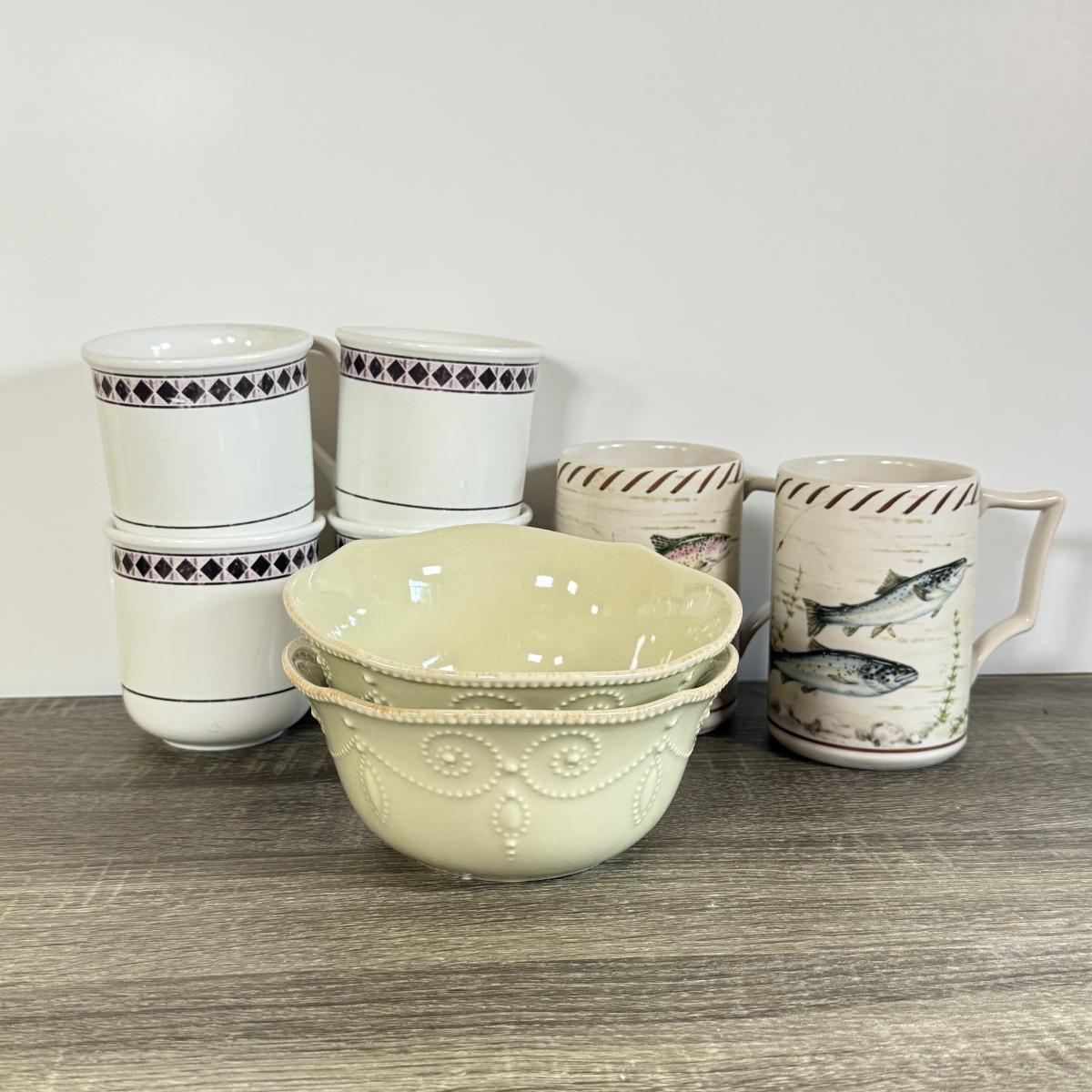 LOT 28D: Lenox Collection: Catherine McClung Riverwood Fish Mugs, French Perle Bowls & Casual Images Diamond Ring Mugs