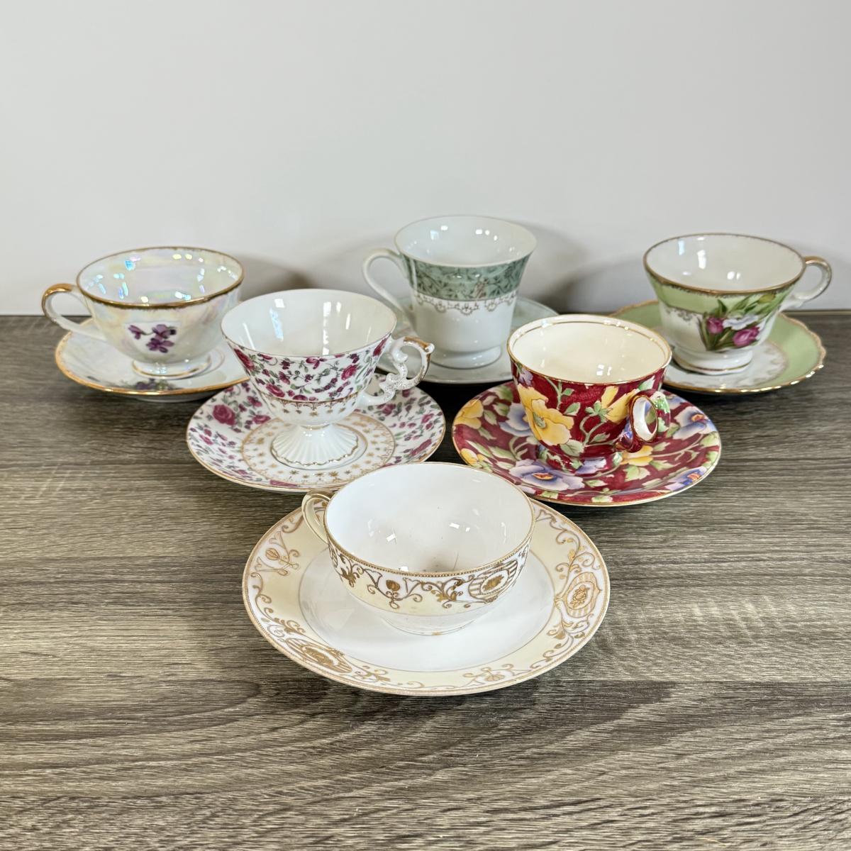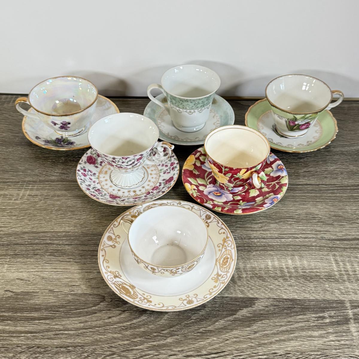 LOT 31D: Vintage Tea Cups w/ Matching Saucers: Nippon, Royal Winton June Festival & More