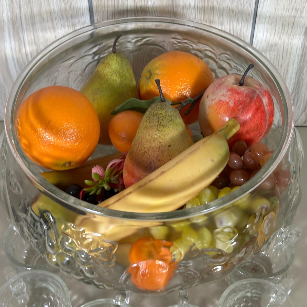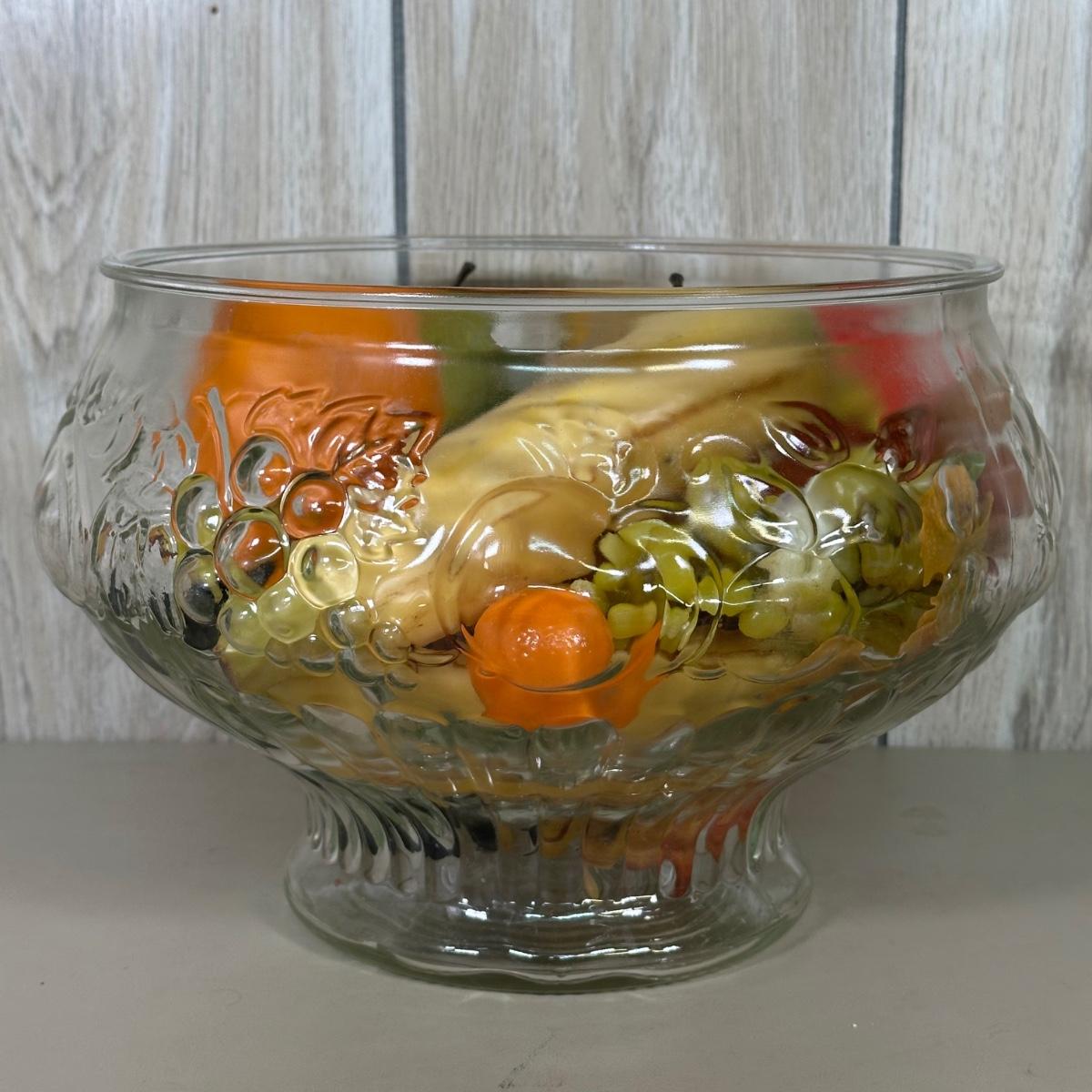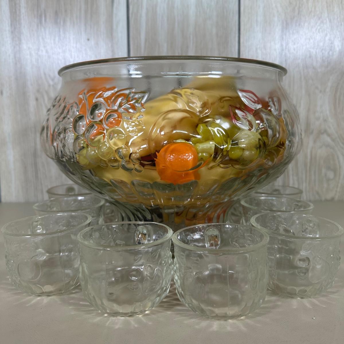LOT 59B: Vintage Jeanette Embossed Glass Punch Bowl w/ 12 Cups