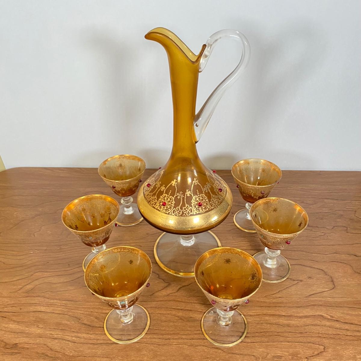 LOT 66D: Venetian Glass Decanter & Stemware (Set of 6)