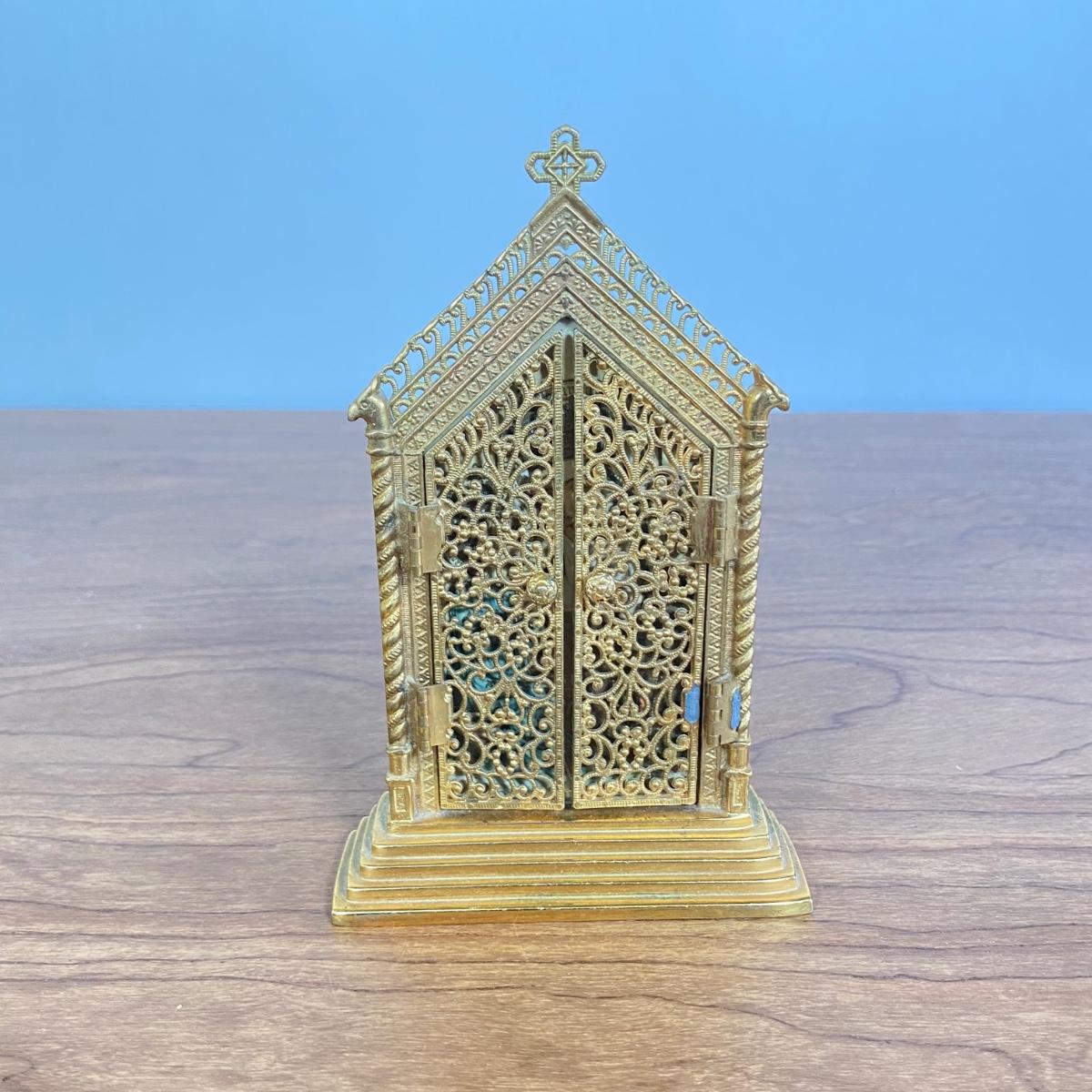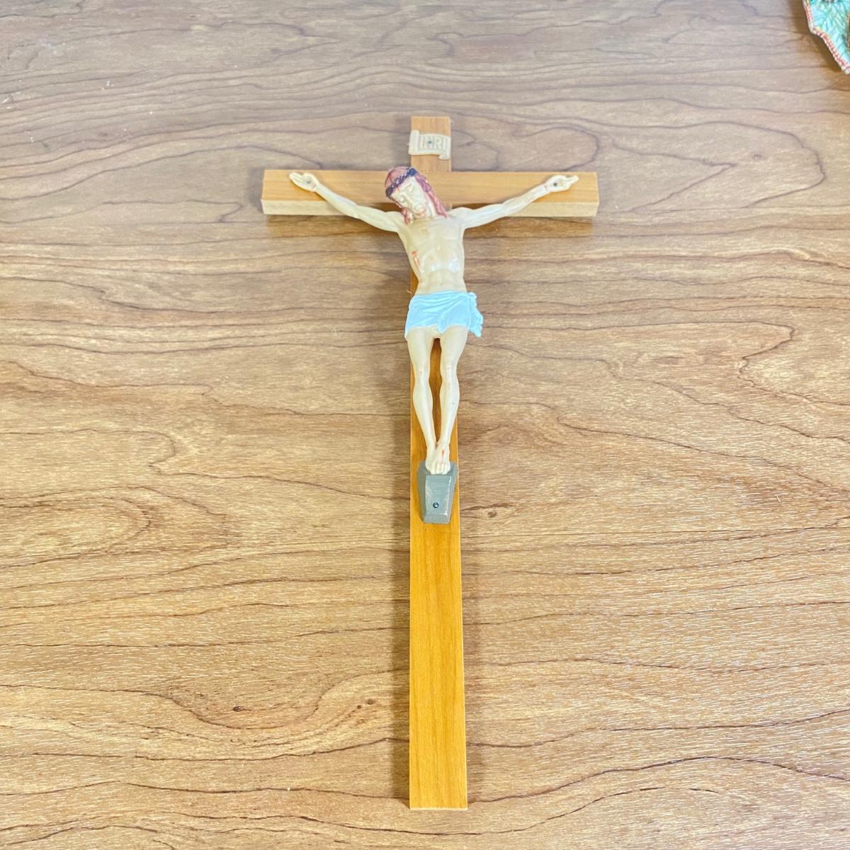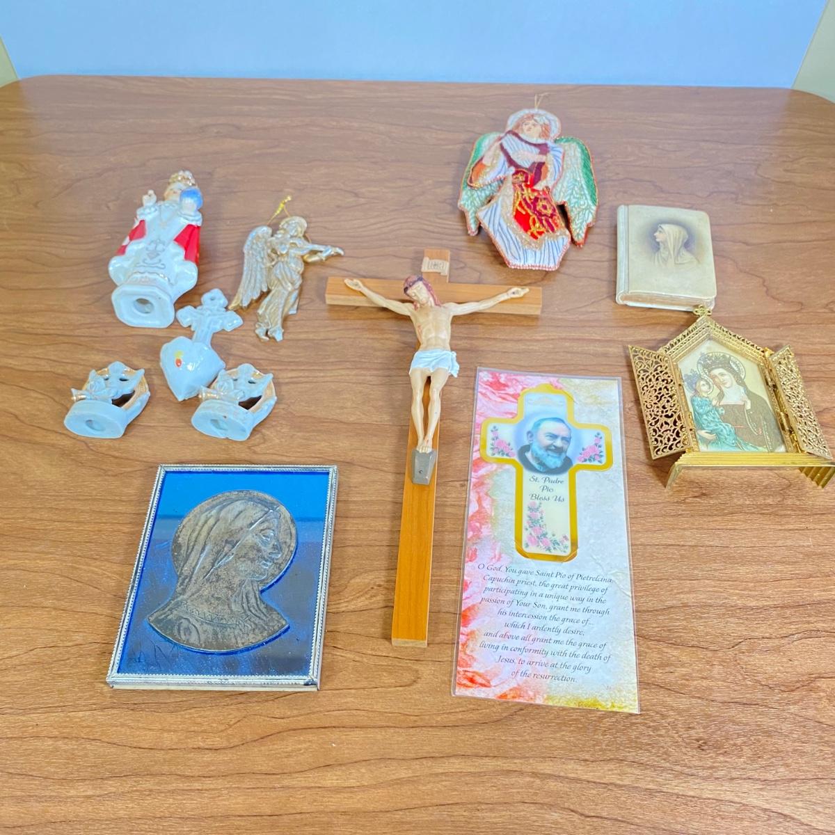 LOT 70D: Various Religious Memorabilia, including a Metal Shrine, Jesus on the Cross, and Porcelain Figurines