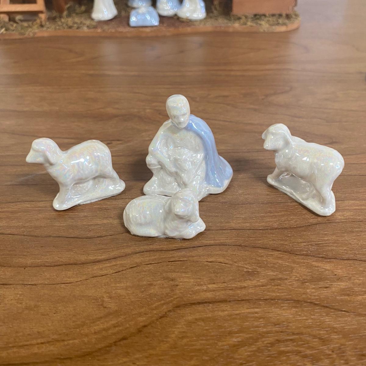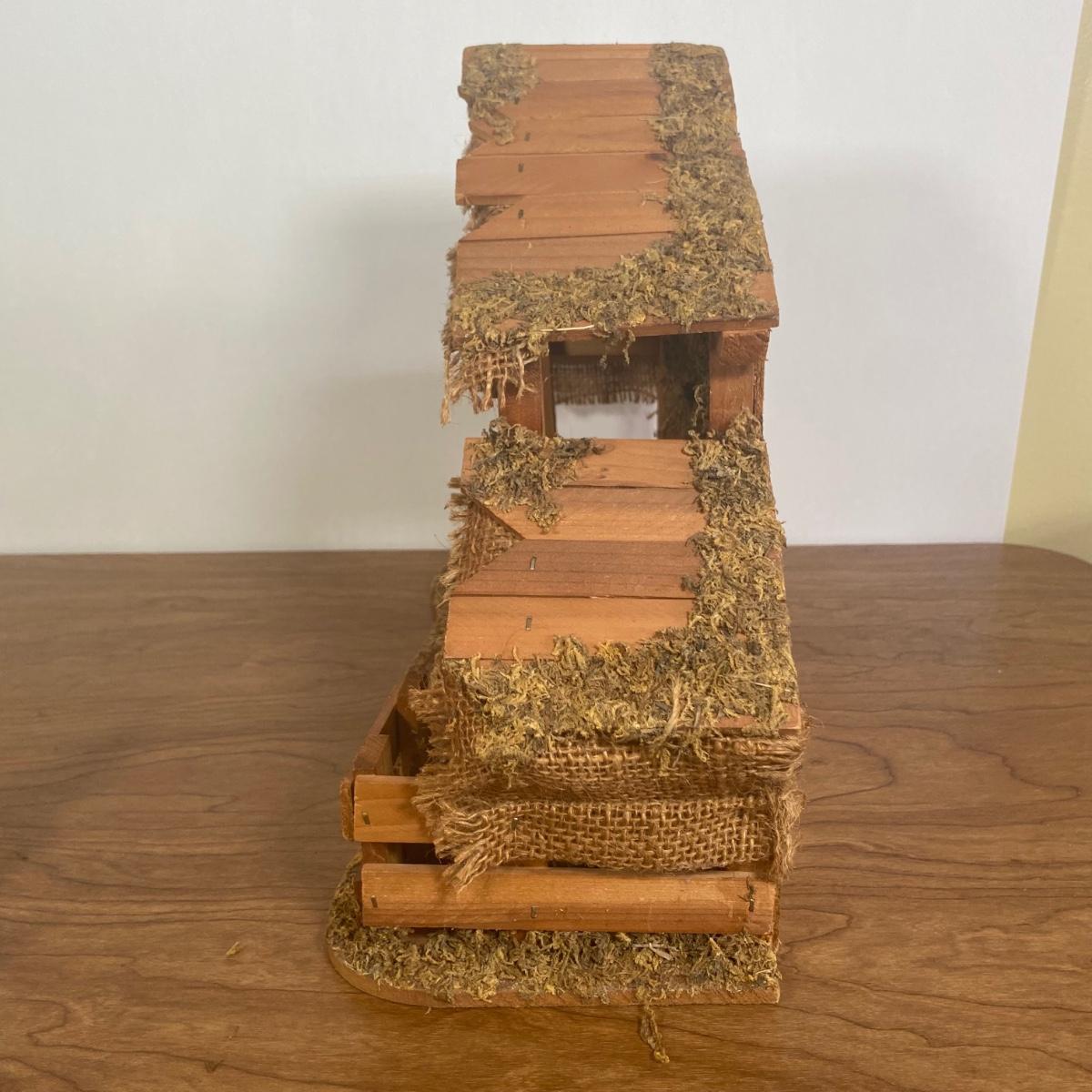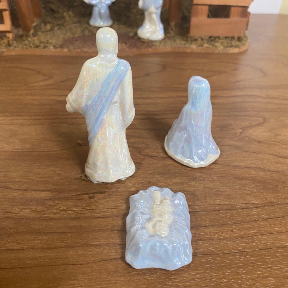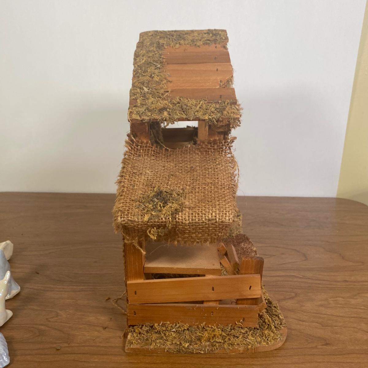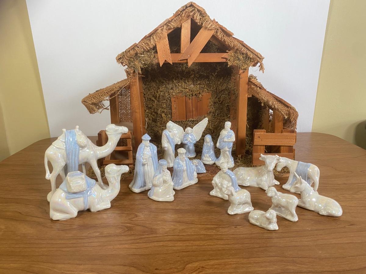 LOT 72D: Vintage Nativity Set in Manger with Porcelain Figurines