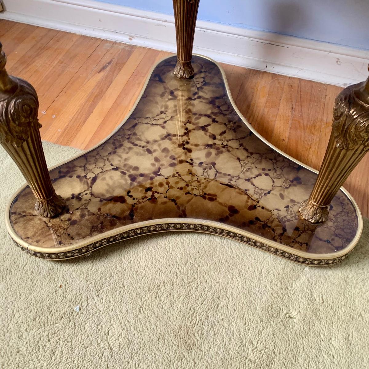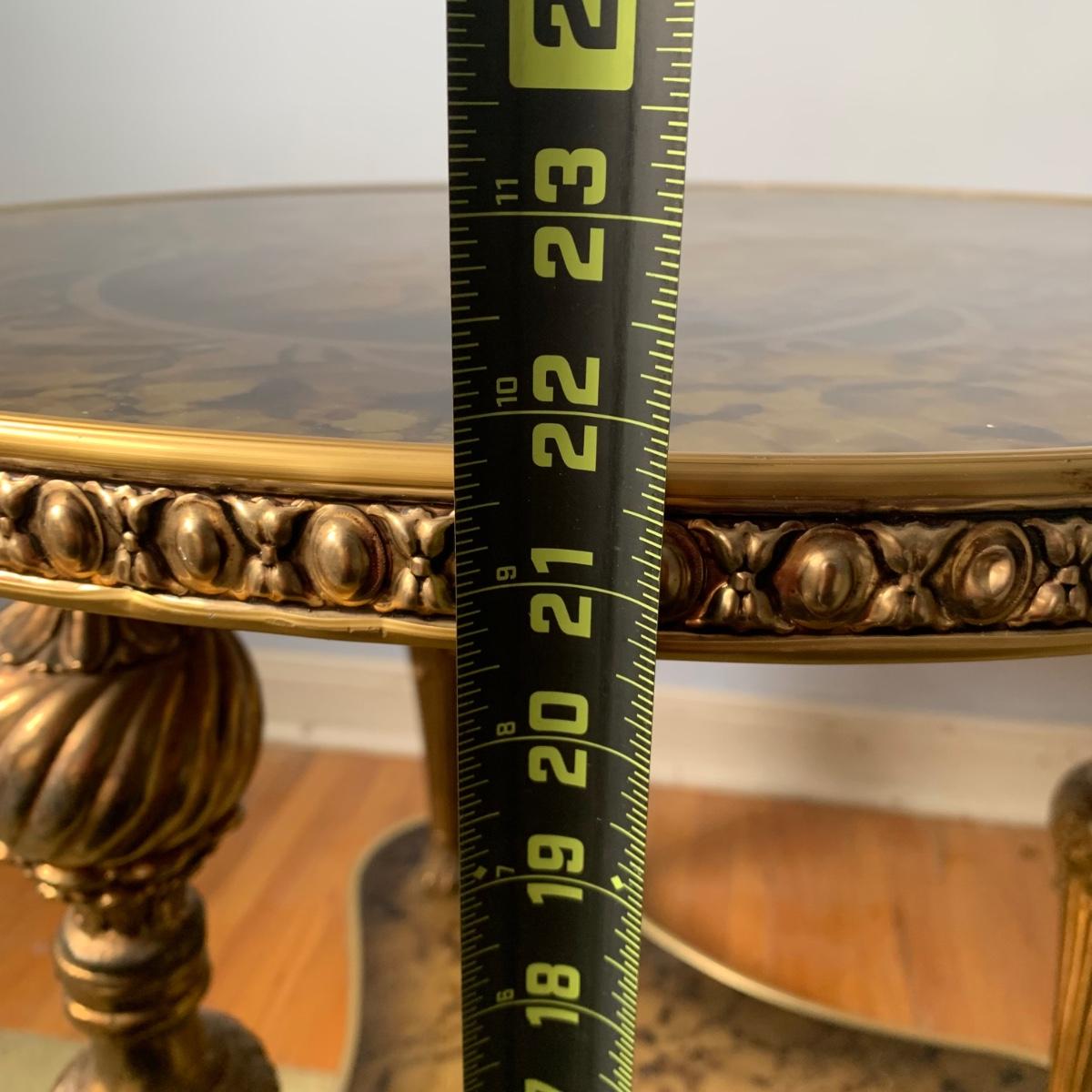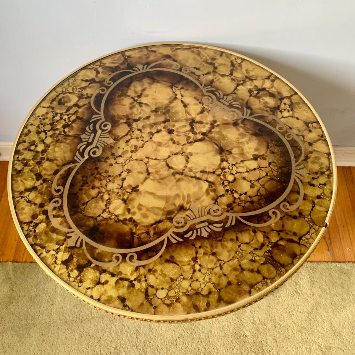 LOT 83 Z: Round Hollywood Regency Style Gold Foil Inlay Coffee Table