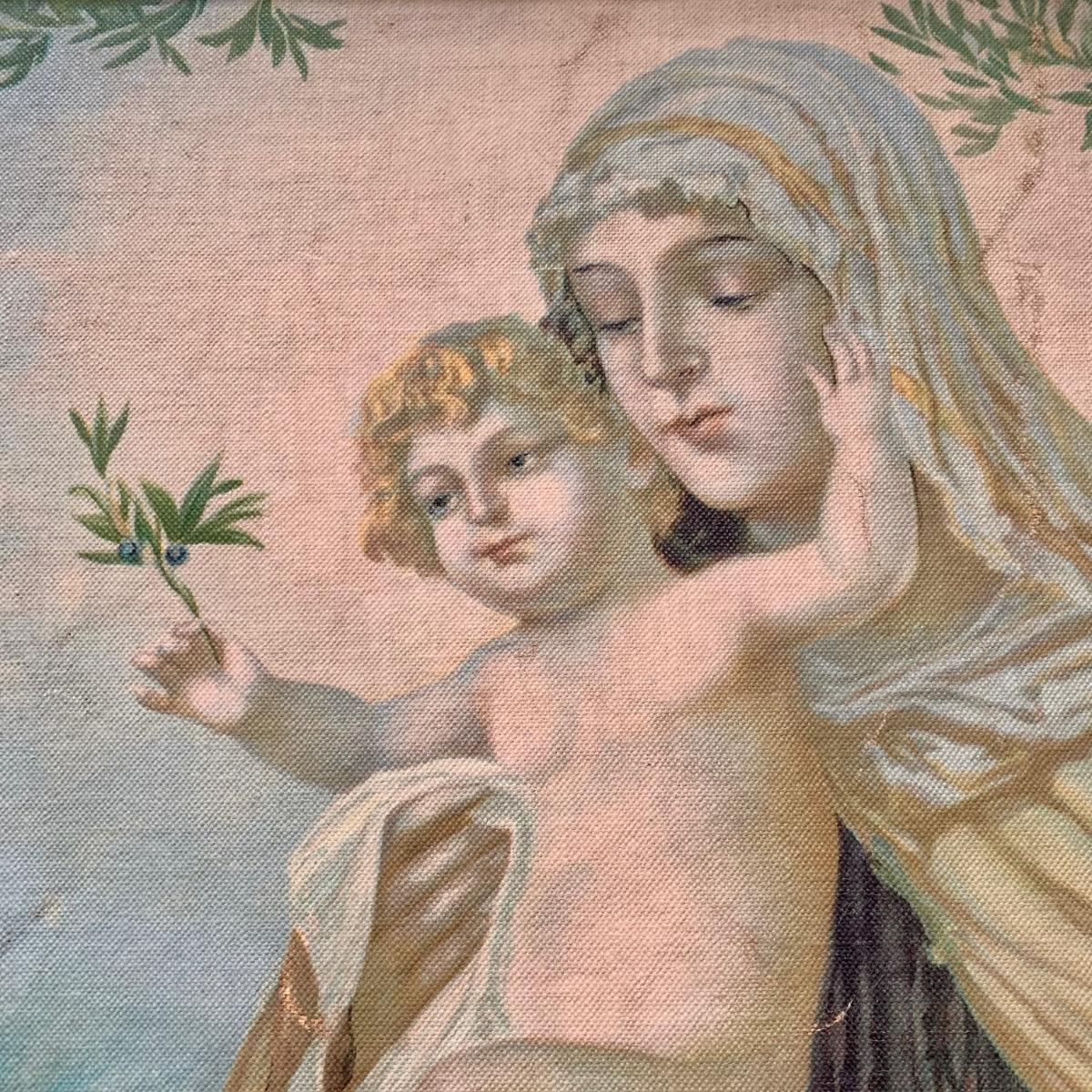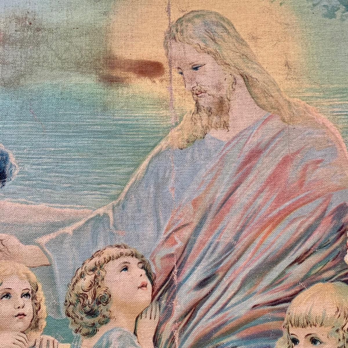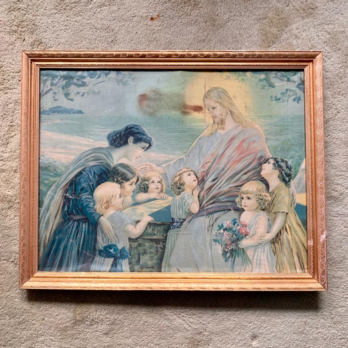 LOT 84 Z: Duo of Vintage Religious Canvas Lithographs in Gilded Frames