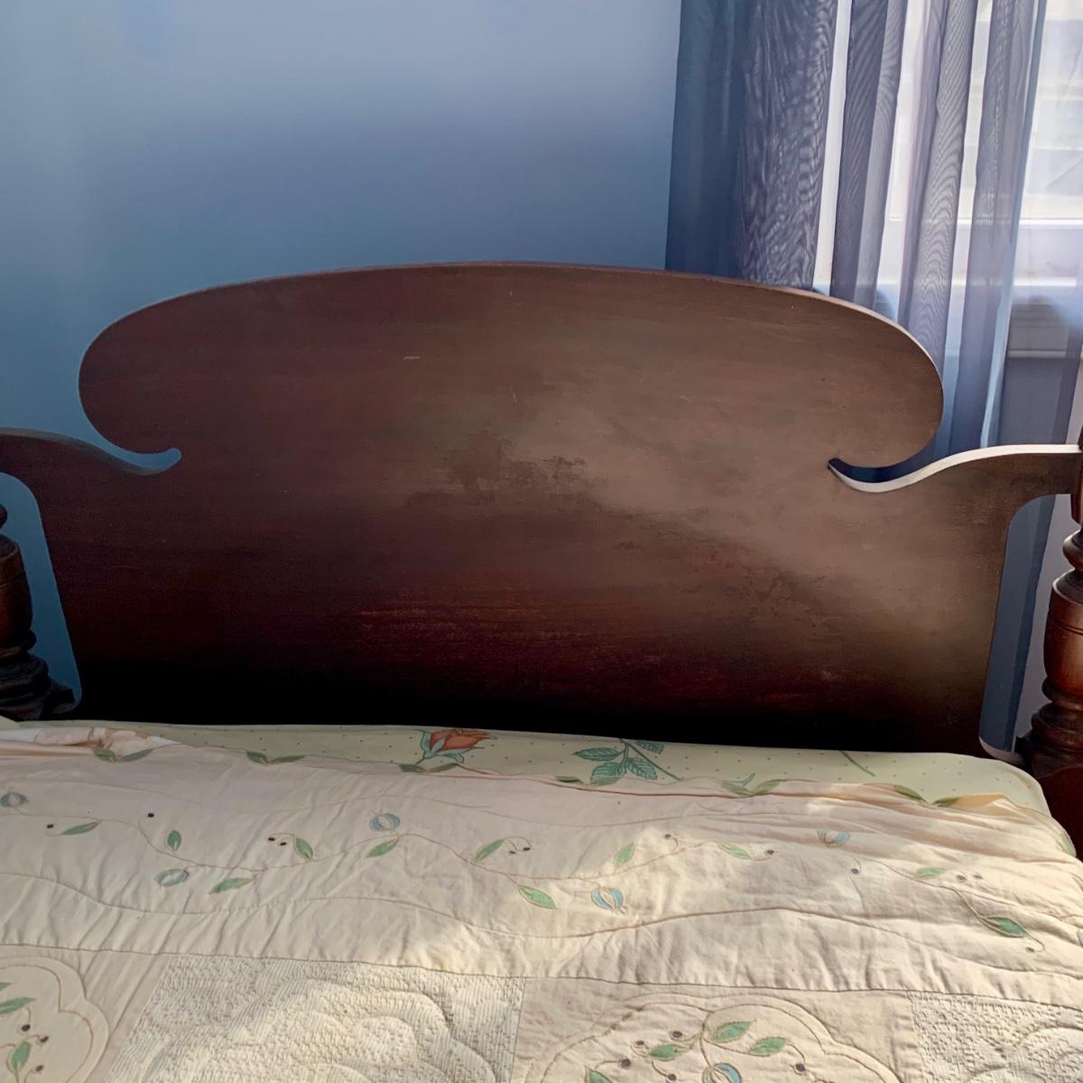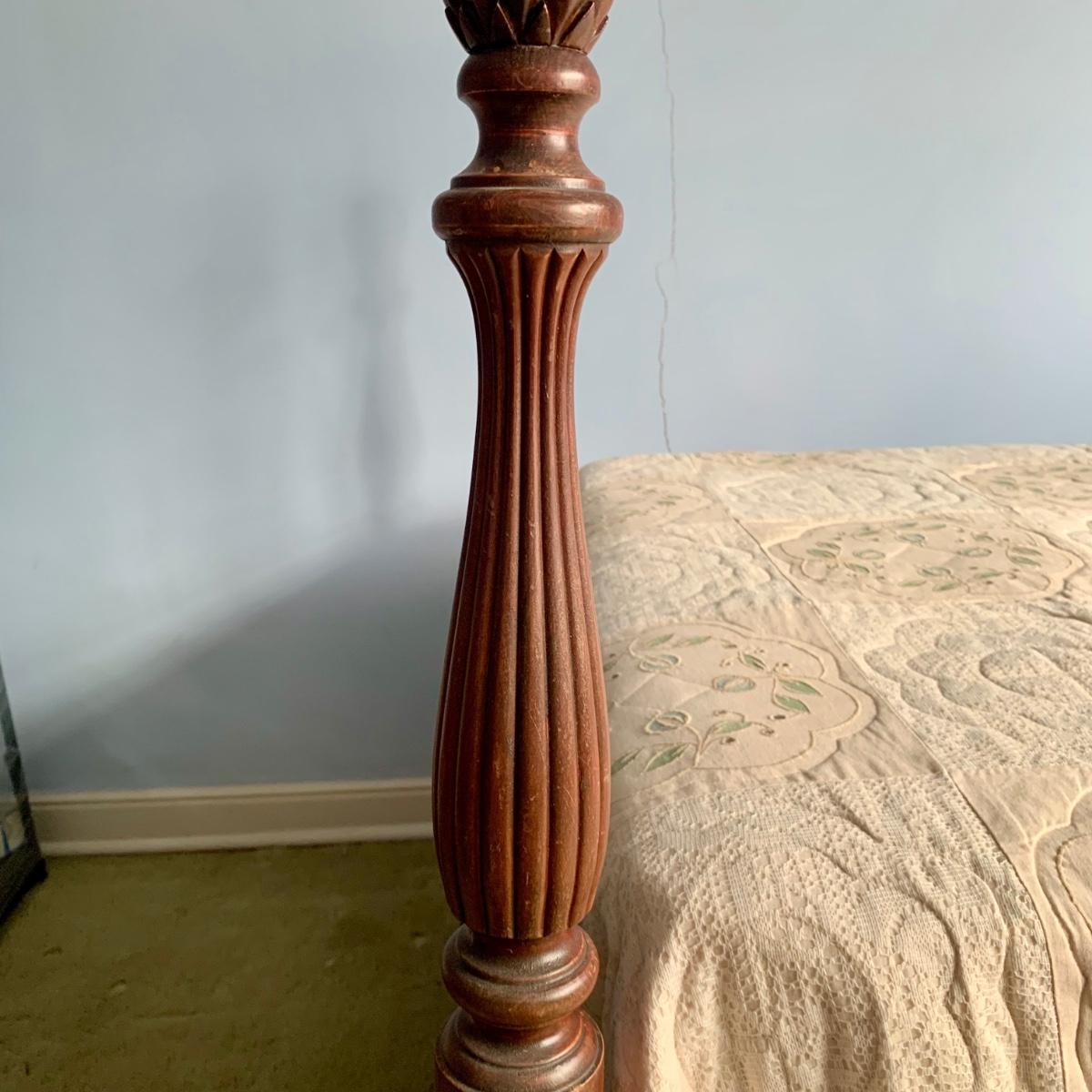LOT 85 Z: Vintage Mahogany Pineapple Poster Bed Frame & Antique Box Spring