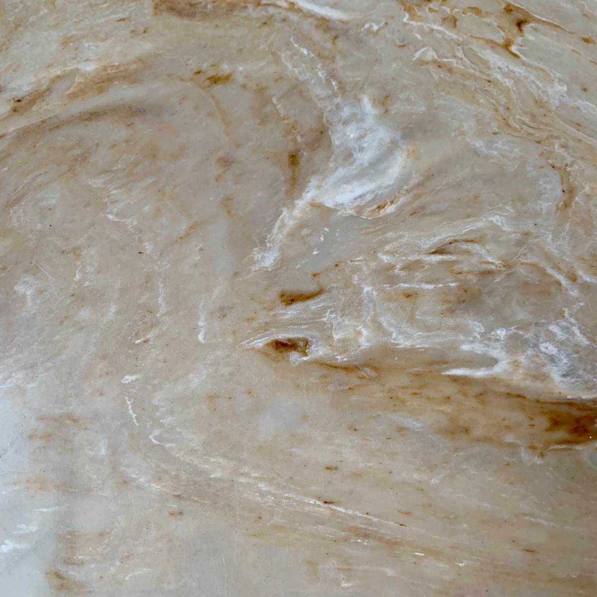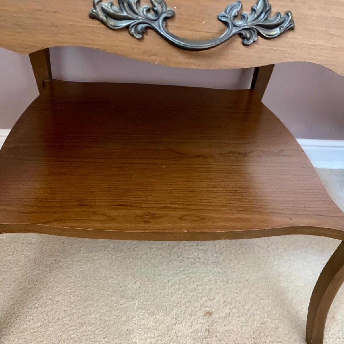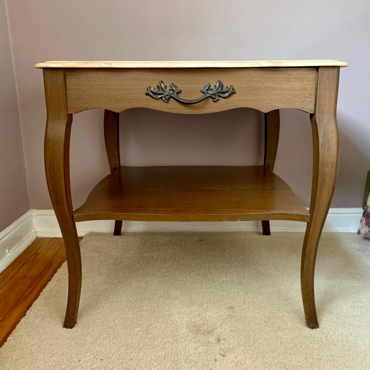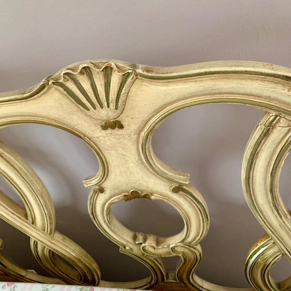 LOT 100 X: French Provincial Style Headboard & Faux Marble Top Bedside Table