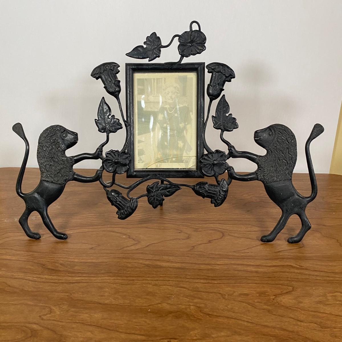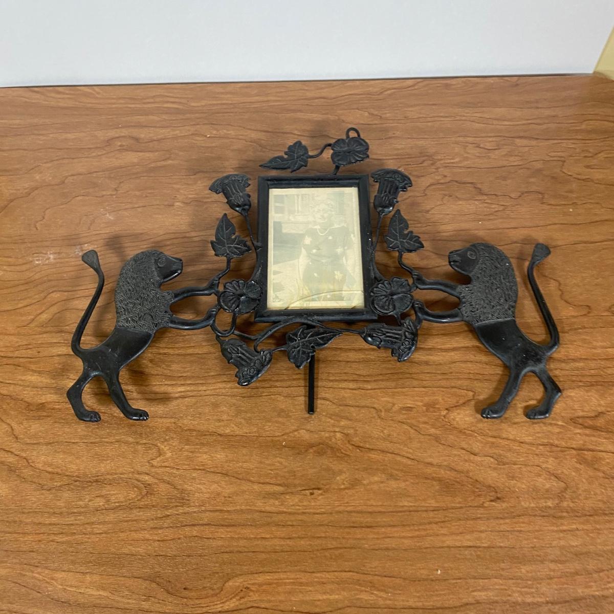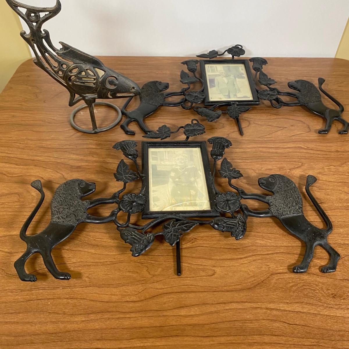 LOT 108D: Pair of Cast Iron Picture Frames and Cast Iron Candle Holder