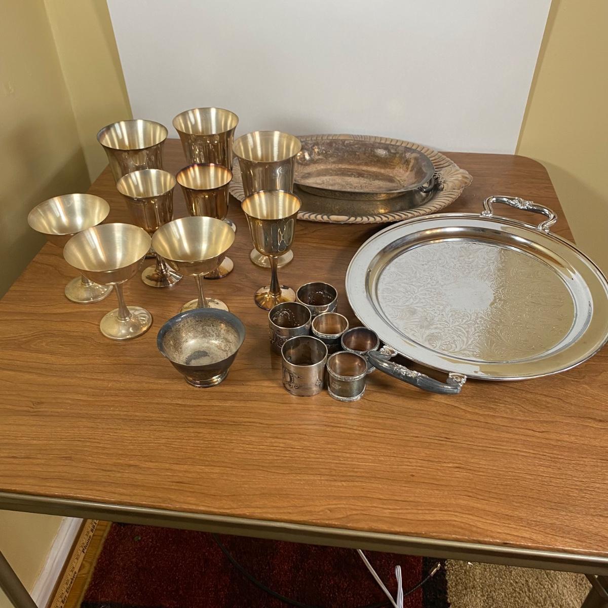 LOT 109D: Vintage Silver Plated Drinkware and Serving Trays