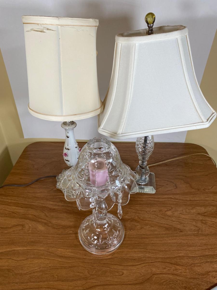 LOT 118D: 2 Lamps with Shades and Votive Candle Holder