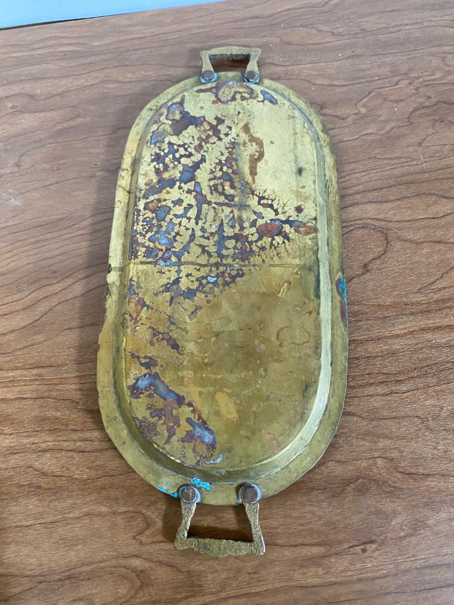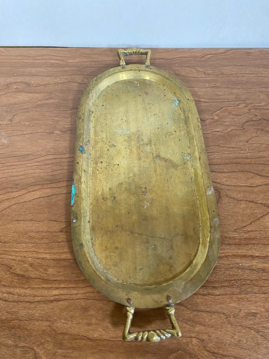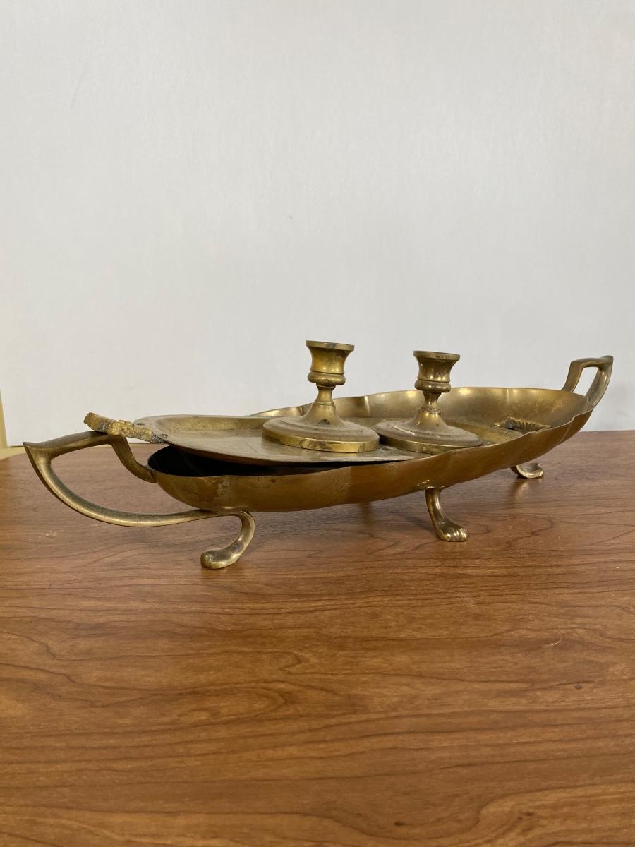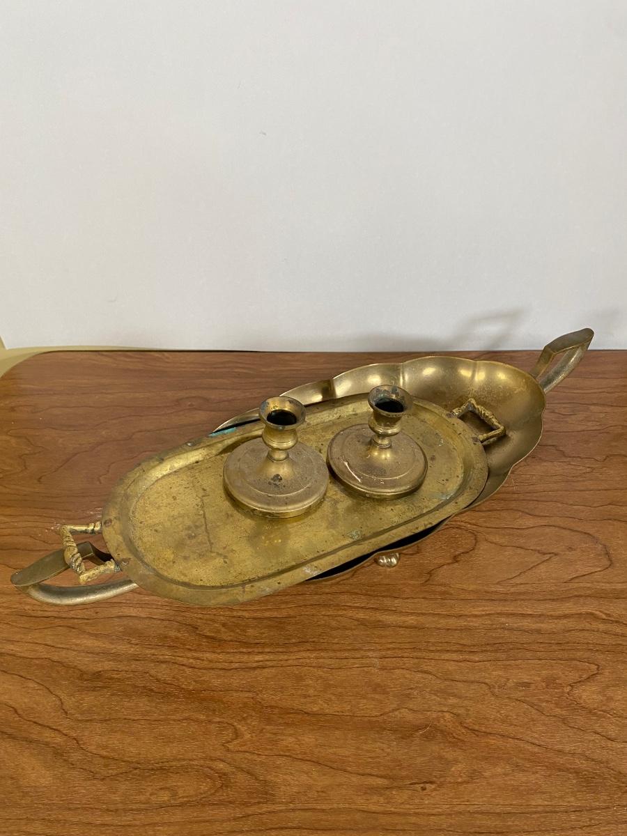 LOT 119D: Brass Candle Stick Holders, Footed Tray Centerpiece, and Serving Tray
