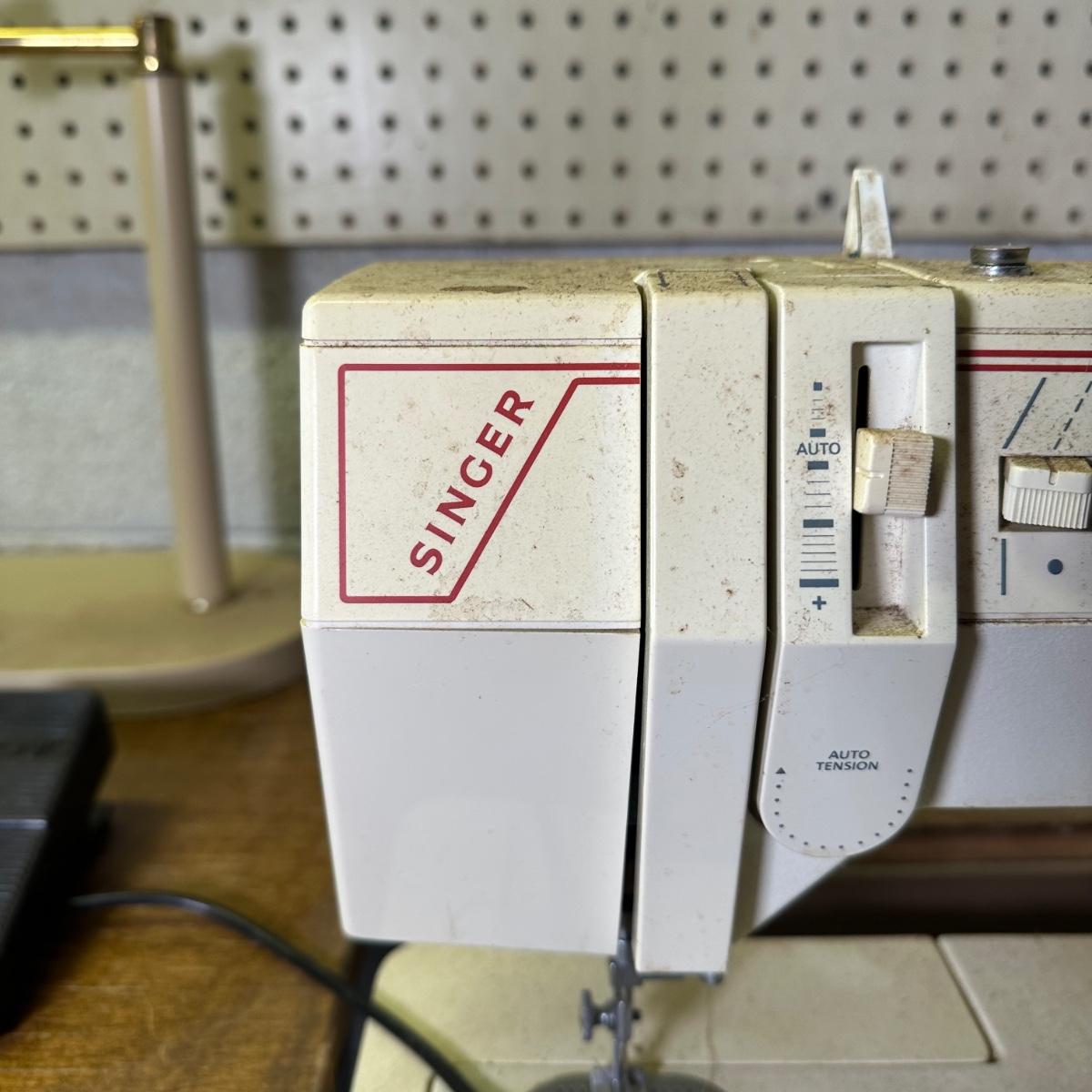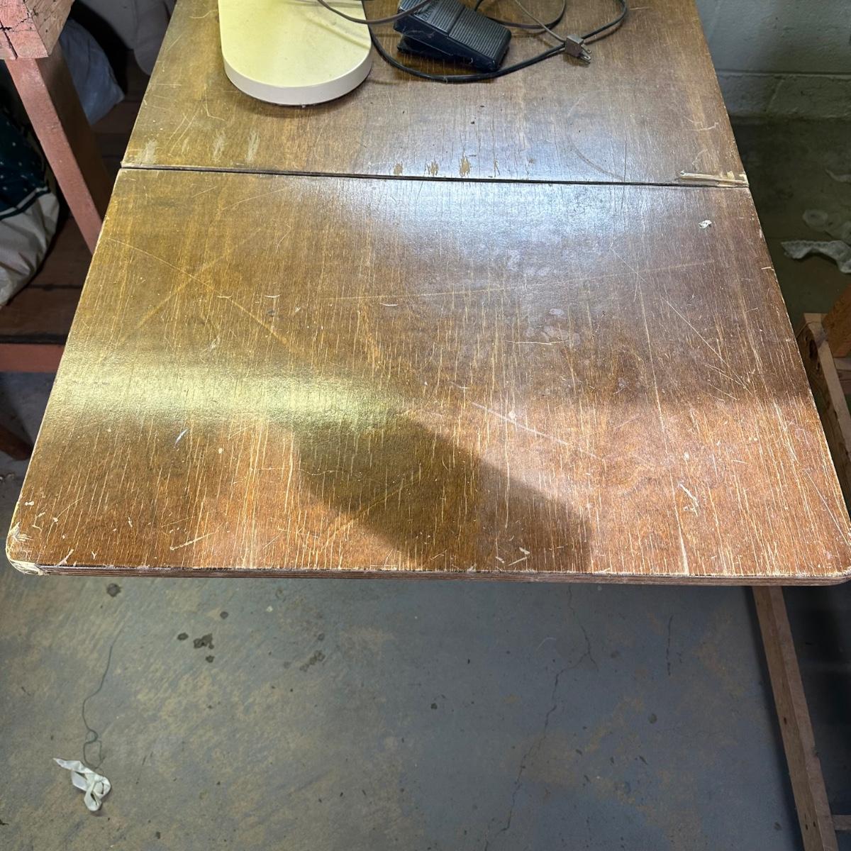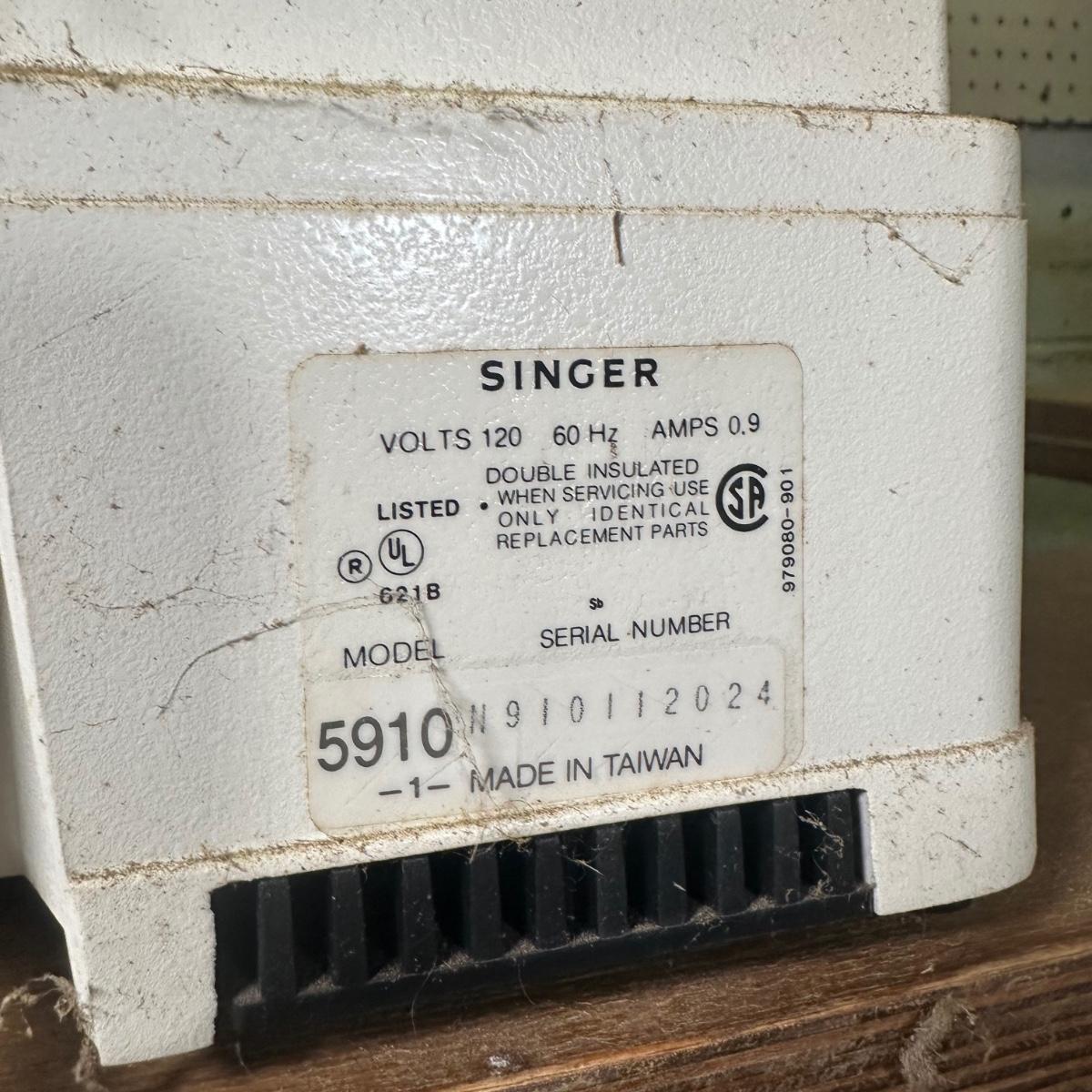LOT 149B: Vintage Drop Leaf Sewing Table w/ Singer 5910 Sewing Machine