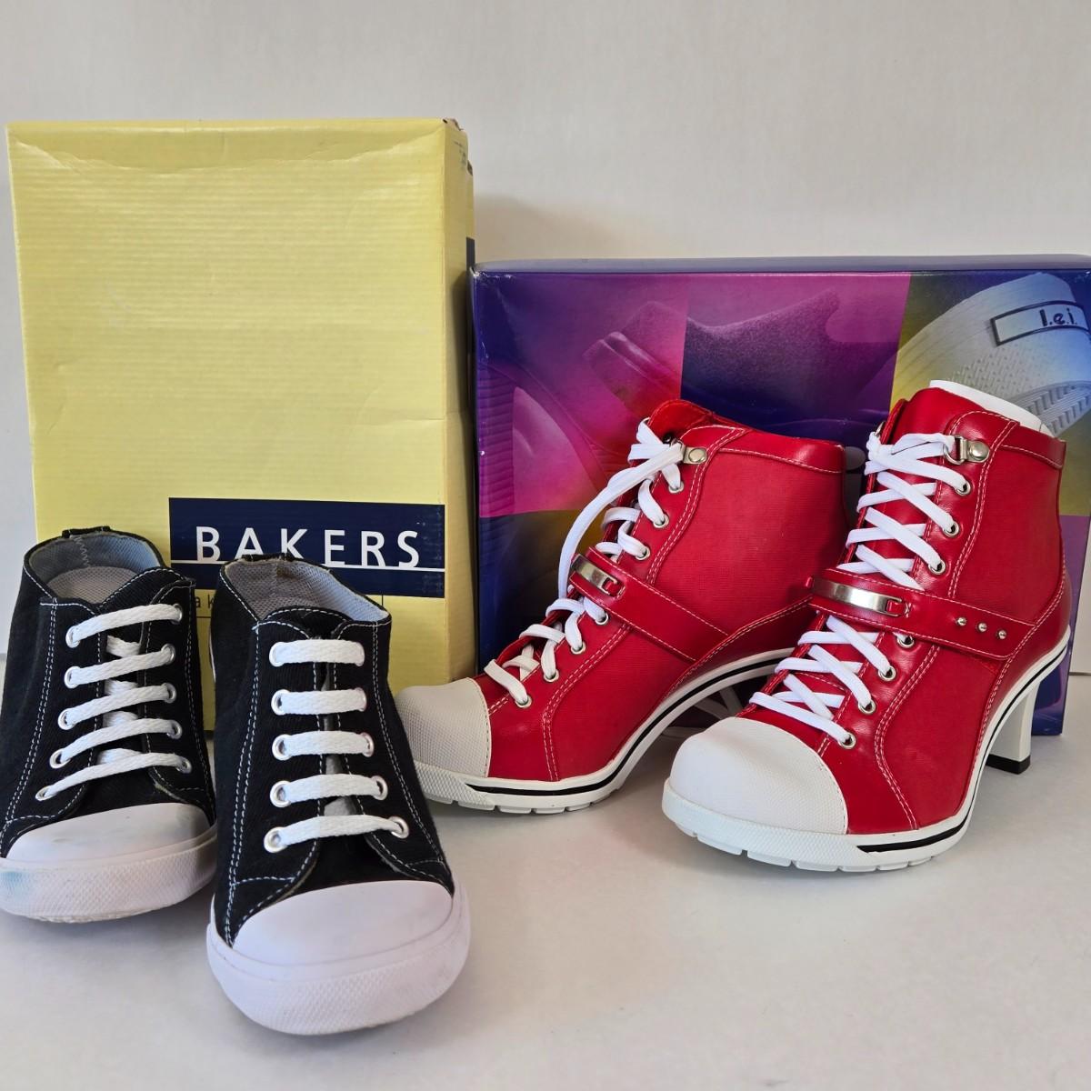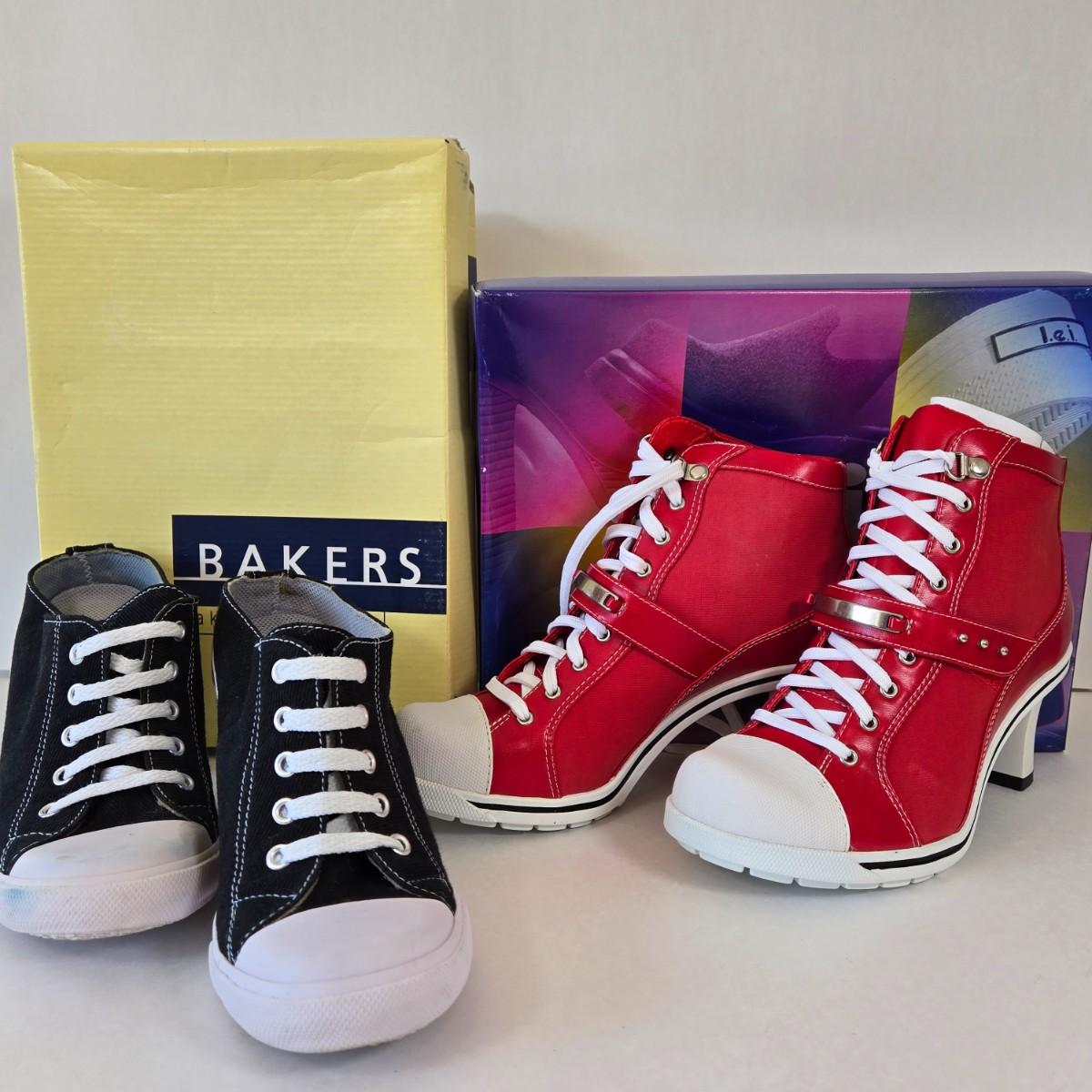 LOT 7A: New In Box l.e.i. Heeled Sneakers Size 7.5 & Slightly Worn Bakers Heeled Sneakers Size 7