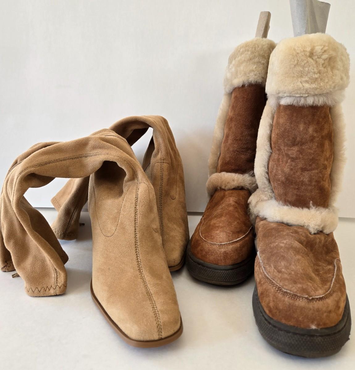LOT 15B: New Hudson Leather with Genuine Shearling Lining Boots Size 7 & Candies Boots Unknown Size