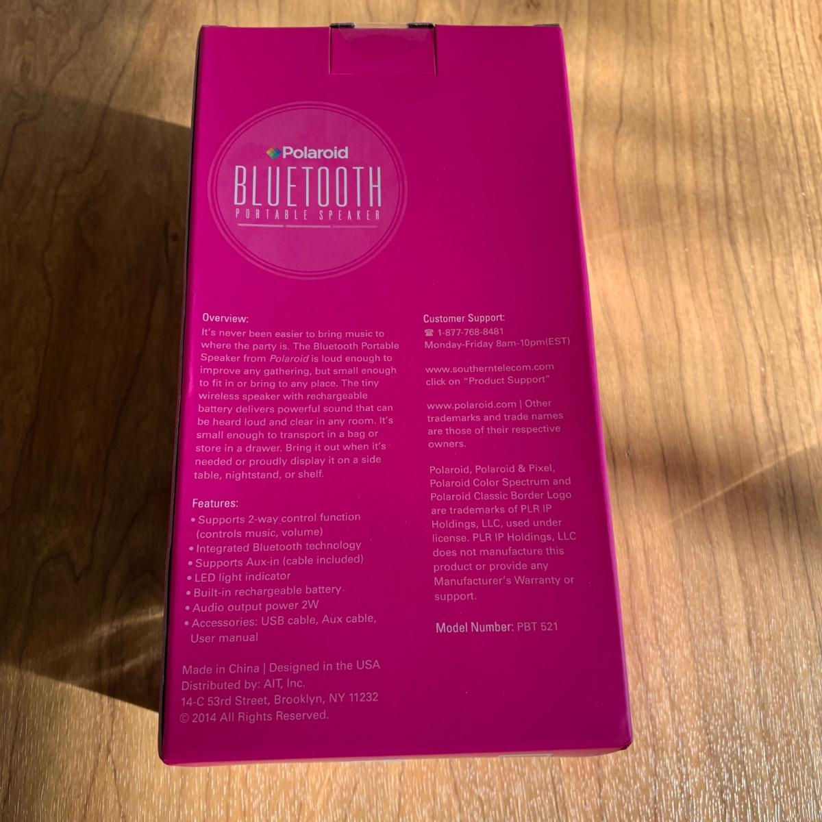LOT 33 A: NIP Polaroid Bluetooth Portable Speaker & Mainstays Speaker Light w/ Cord
