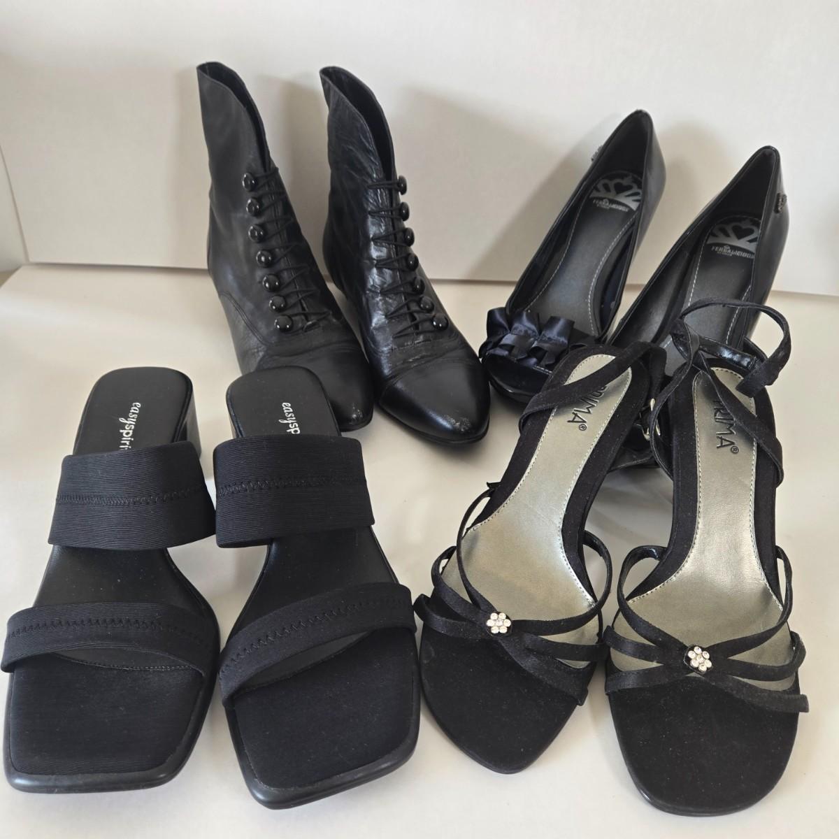 LOT 48: Gently Worn Poppies Boots Size 7.5, Easy Spirit Sandals size 7.5, Glamorous Pumps Size 7, & Prima Dress Sandals Size 7
