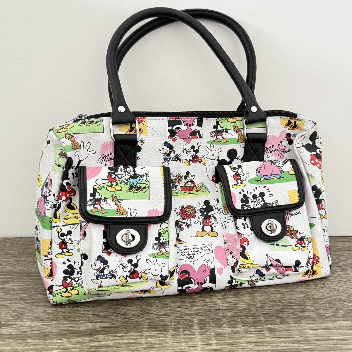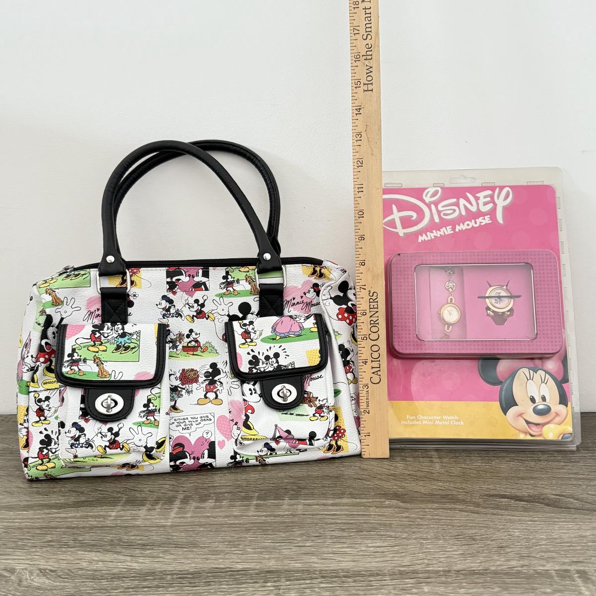 LOT 81A: Disney Mickey Mouse Comic Strip Print Bag & Disney Minnie Mouse Fun Character Watch and Clock Set