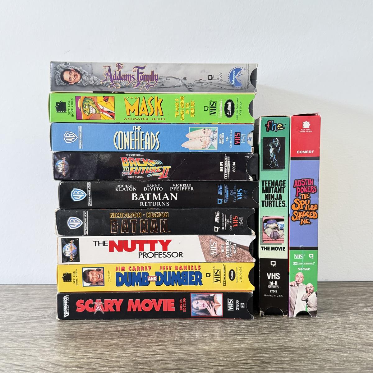 LOT 101B: VHS Tapes: Back to the Future II, Coneheads, The Addams Family, Austin Powers, Keaton Batman & Batman Returns, Teenage Mutant Ninja Turtles, Dumb and Dumber, Scary Movie & The Mask