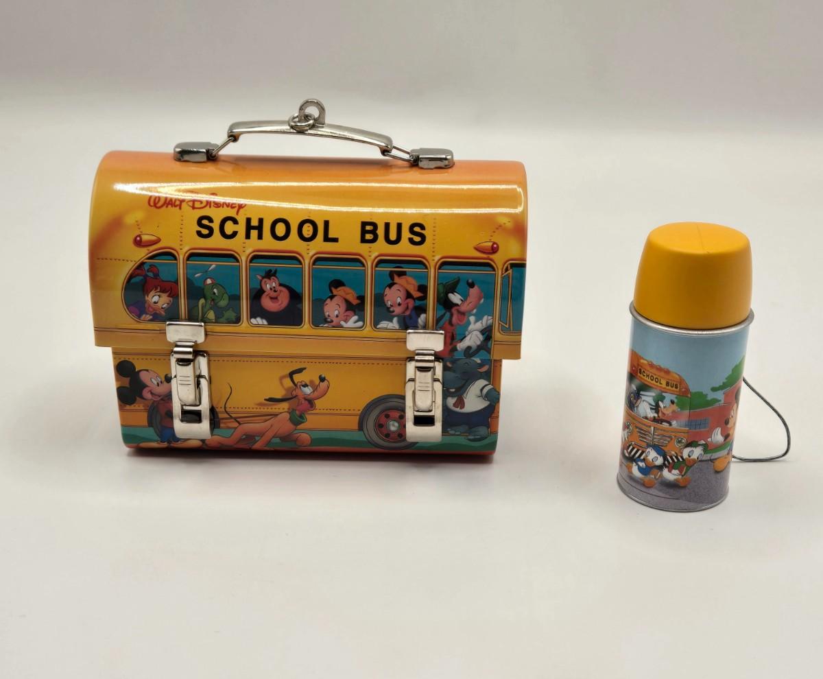 LOT 138A: Disney Hallmark Ornaments: School Bus w/ Matching Thermos & 2001 Mickey w/ Bells