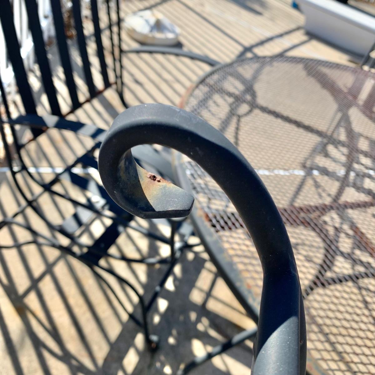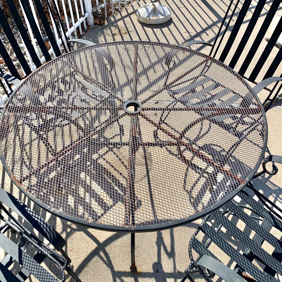 LOT 163 O: Wrought Iron Patio Set; Table & 4 Rocker Chairs