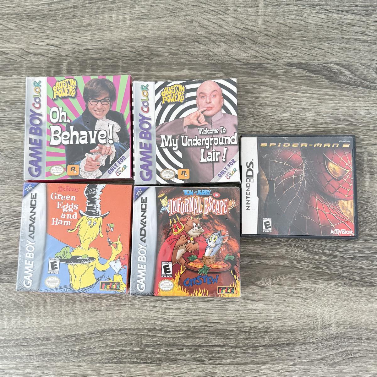 LOT 195B: Spider-Man 2 for Nintendo DS w/ NIP Game Boy Color & GBA Games: Austin Powers, Dr. Seuss' Green Eggs and Ham & Tom and Jerry: Infurnal Escape
