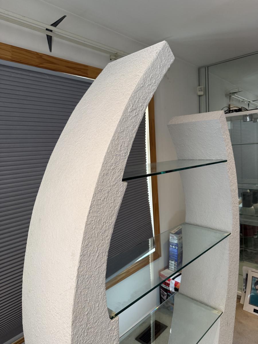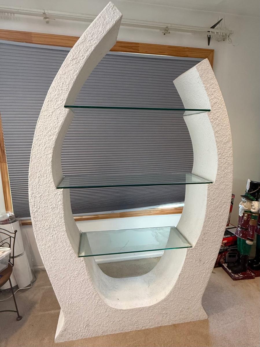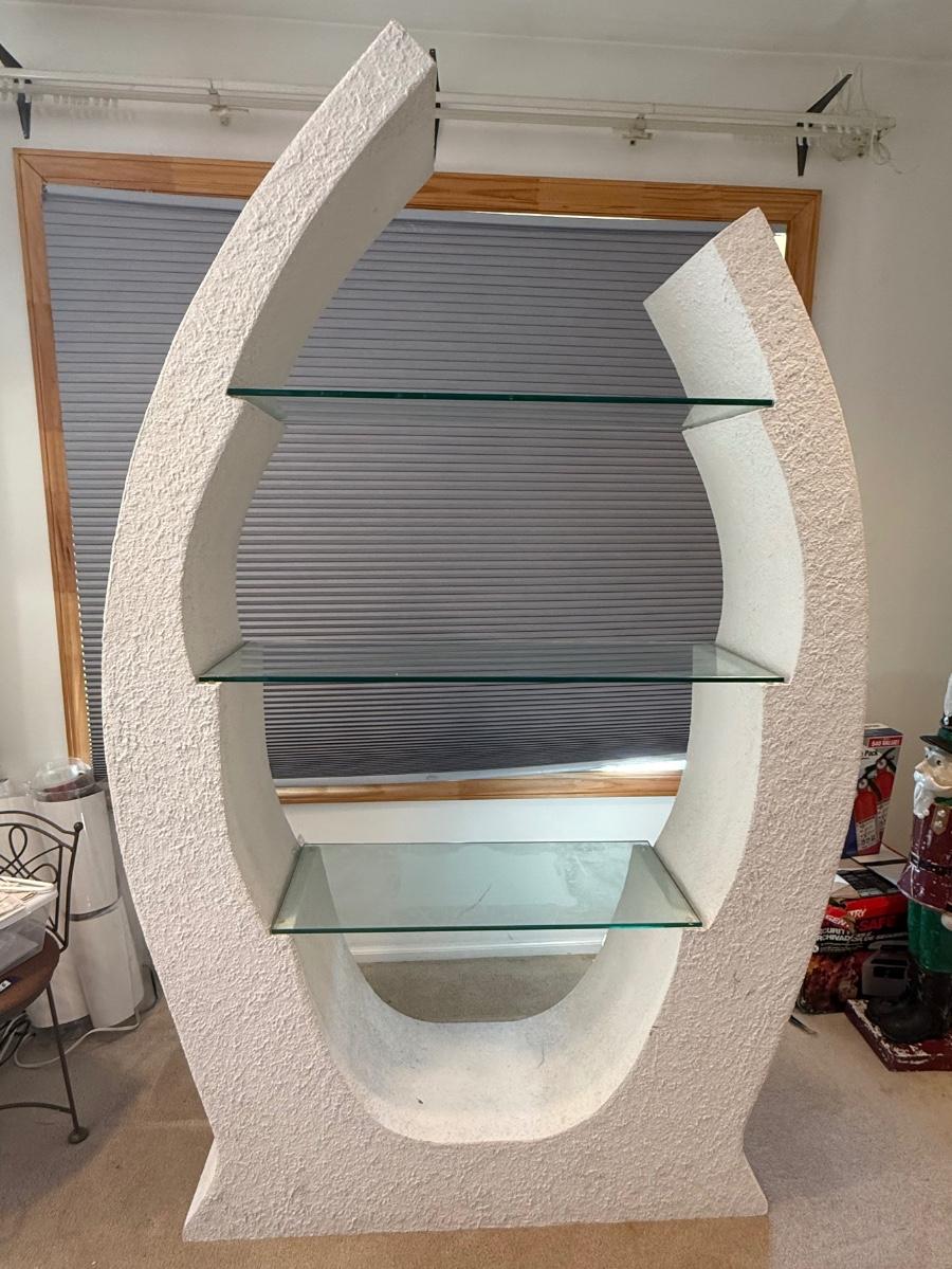 LOT 202B: 1980s Postmodern Sculpted White Stucco & Glass Shelf
