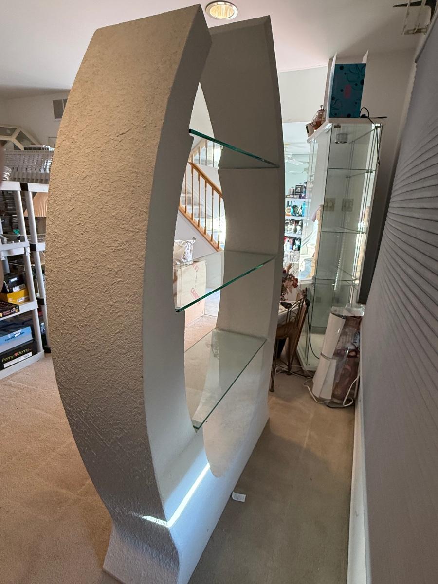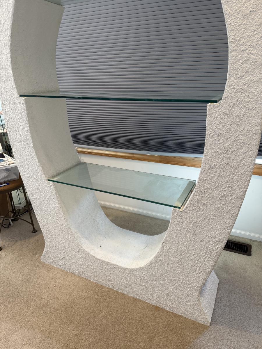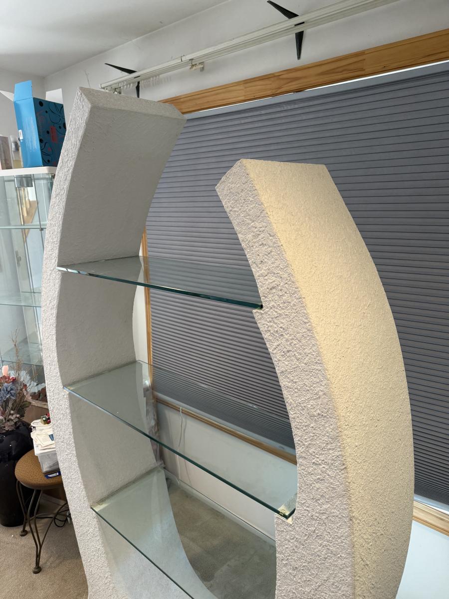 LOT 202B: 1980s Postmodern Sculpted White Stucco & Glass Shelf