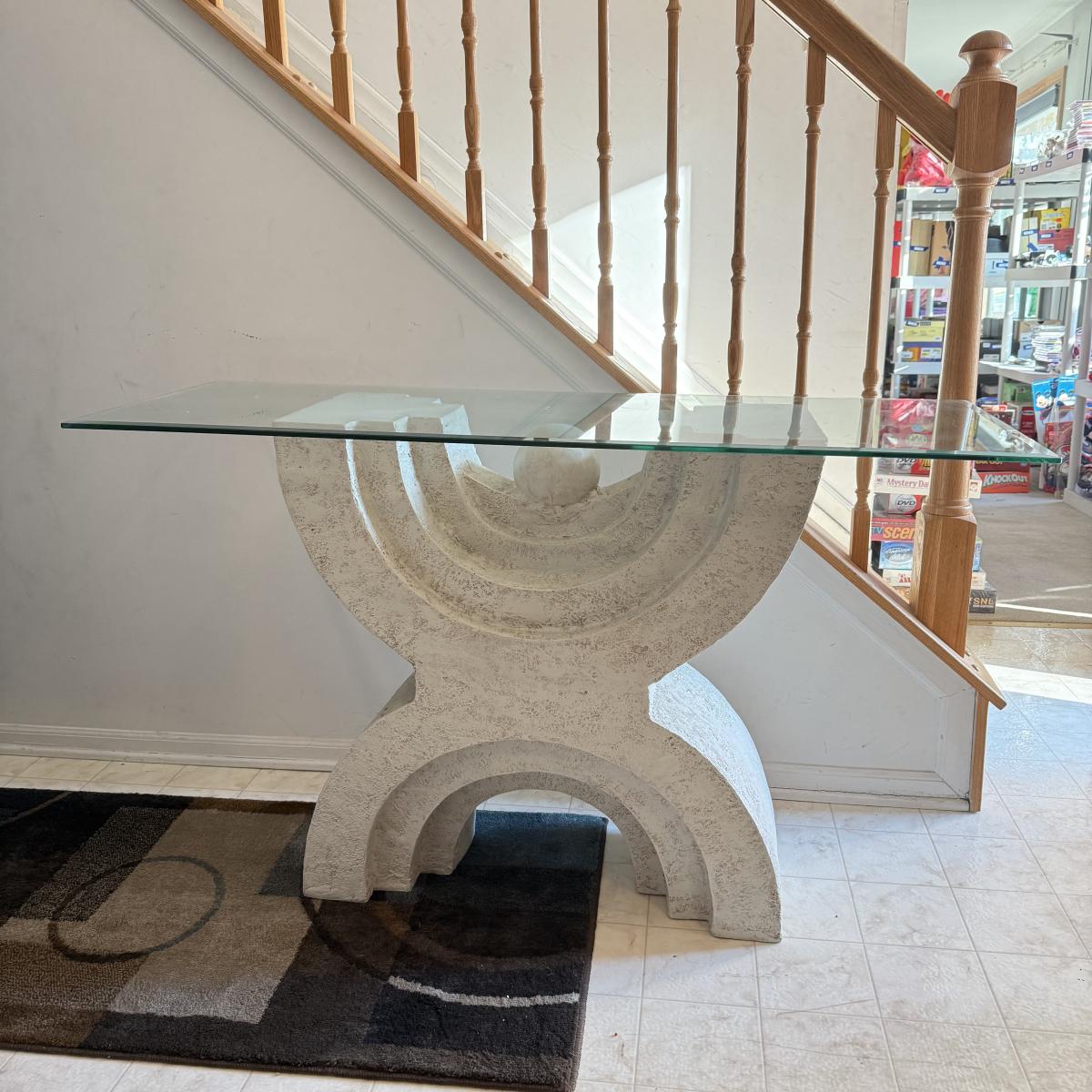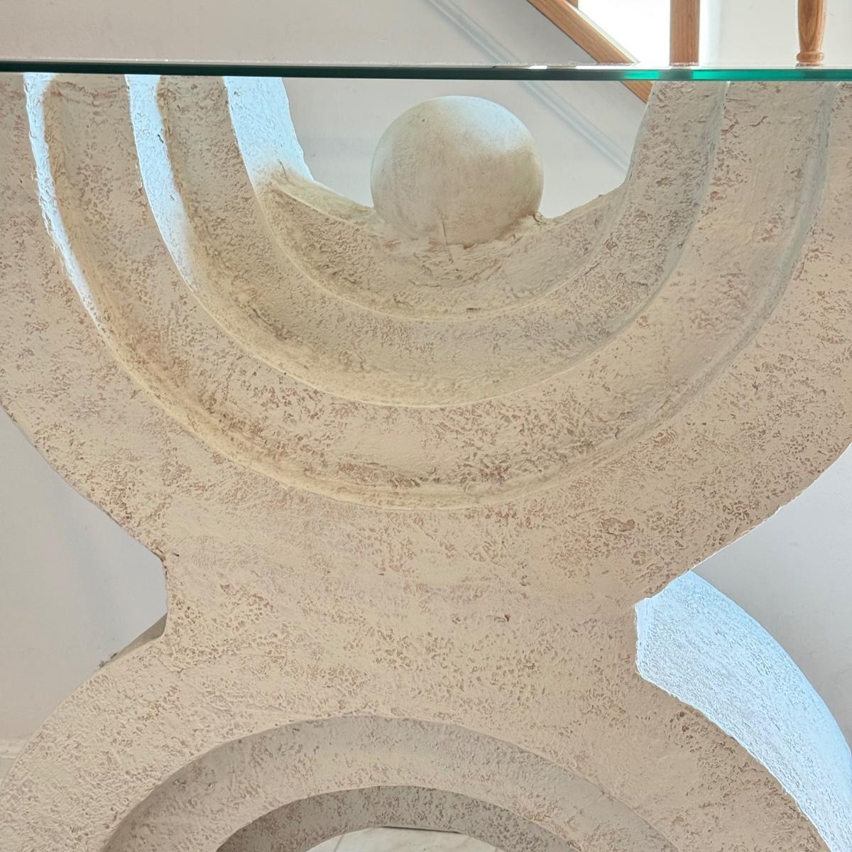 LOT 203B: 1980s Postmodern Sculpted White Stucco Glass Top Table