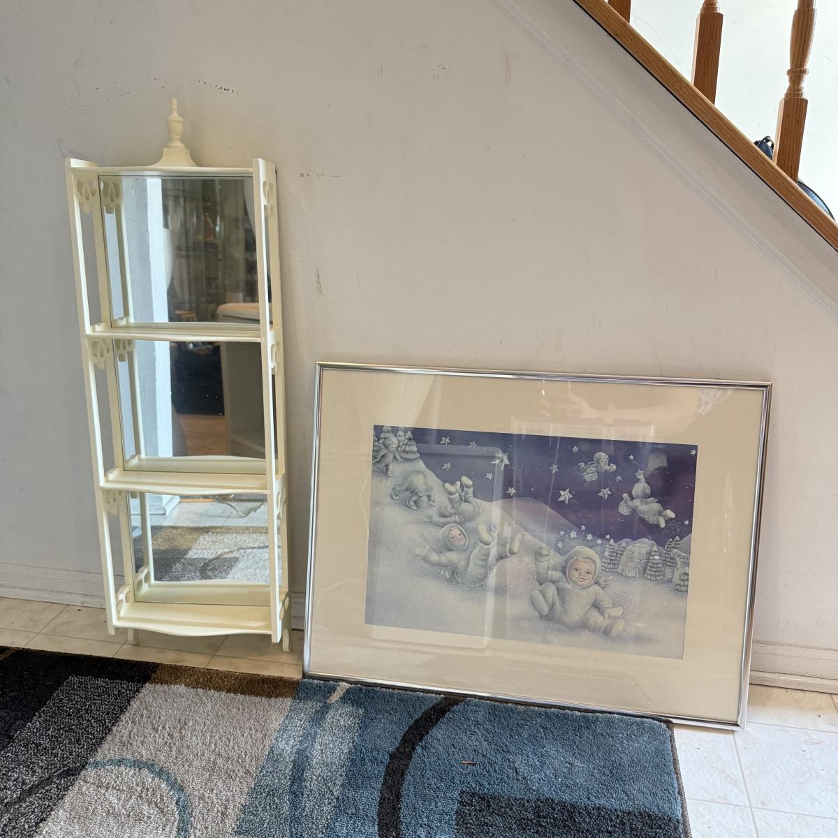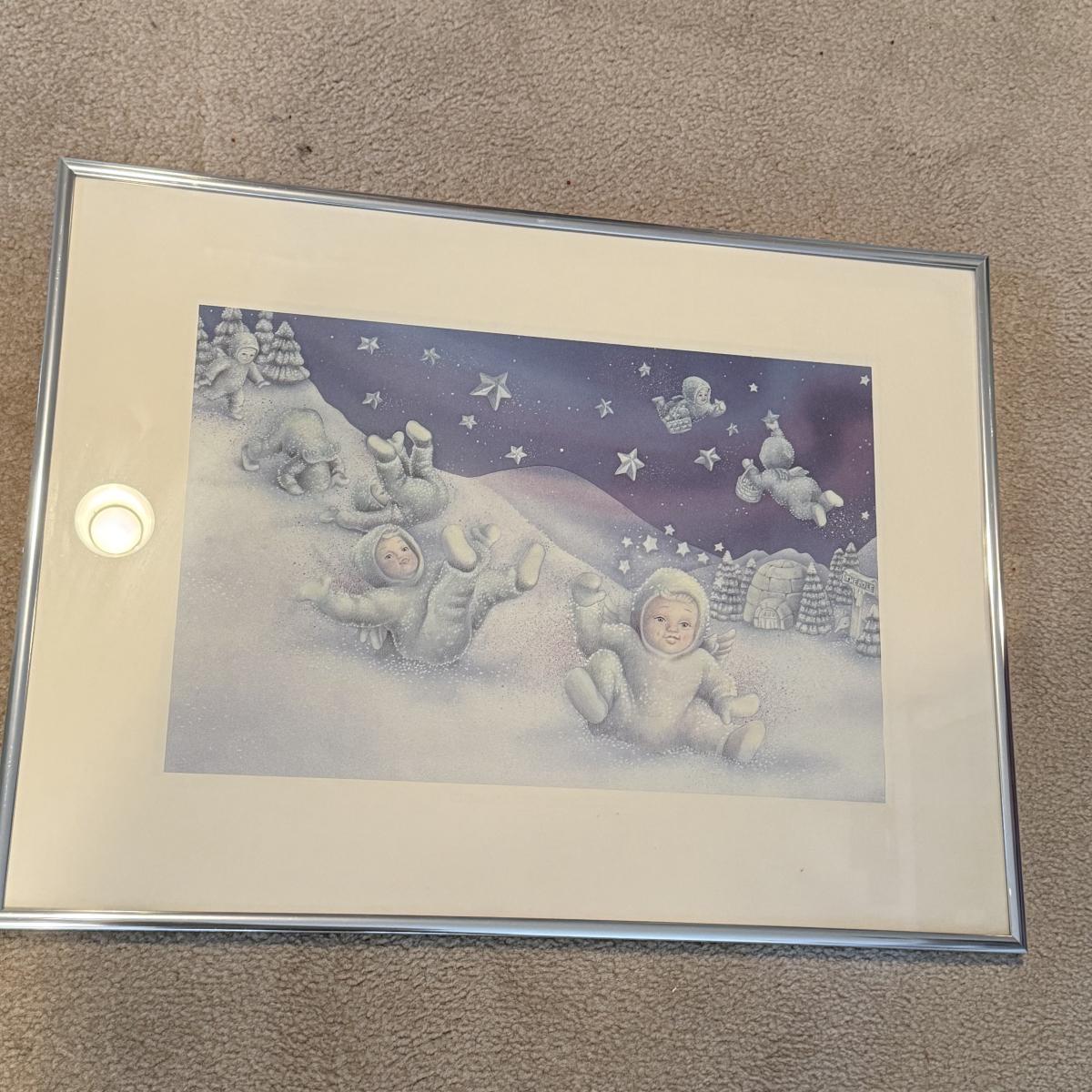 LOT 205B: Department 56 Snowbabies Collection: Framed Print & Mirrored Display Shelf
