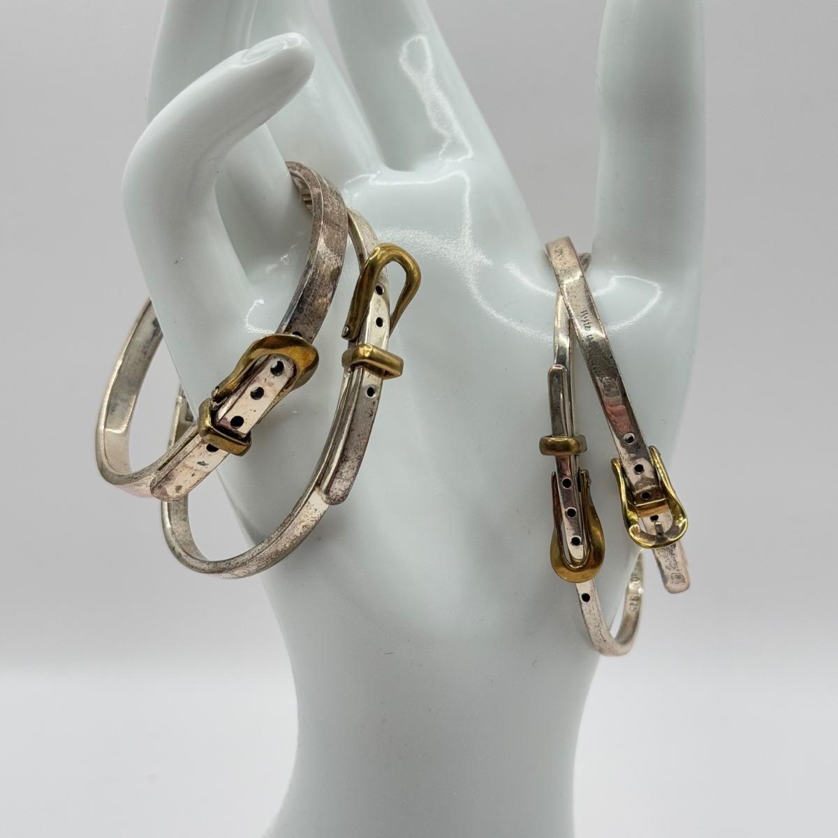 LOT 209J: 925 Taxco Mexico Sterling Silver Belt Buckle Hinged Bracelets (72.3g)
