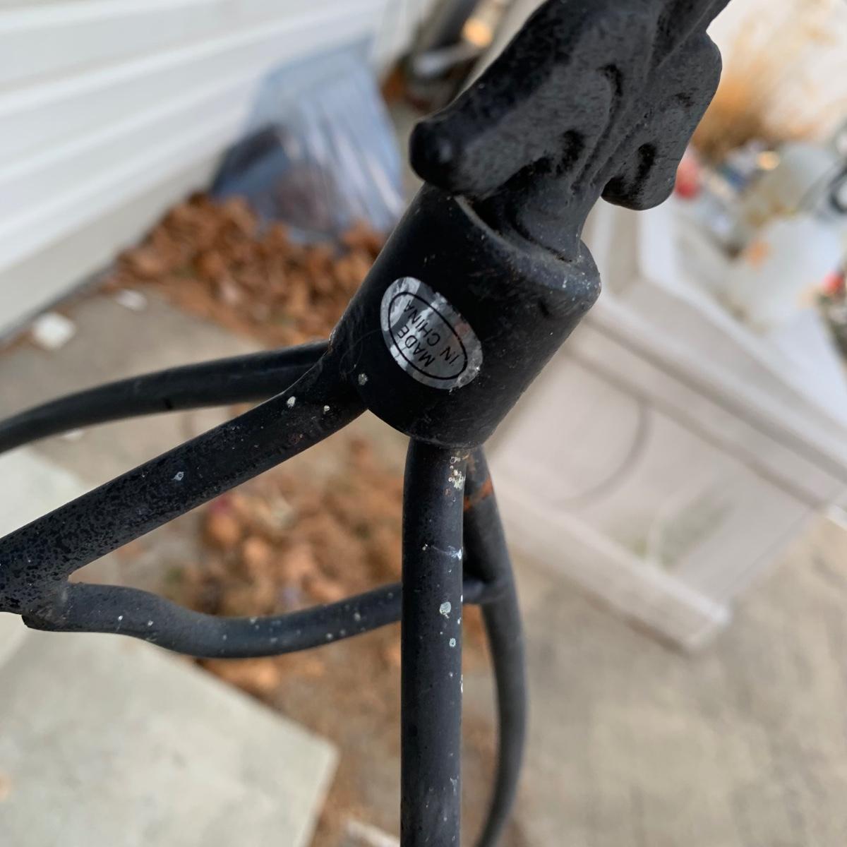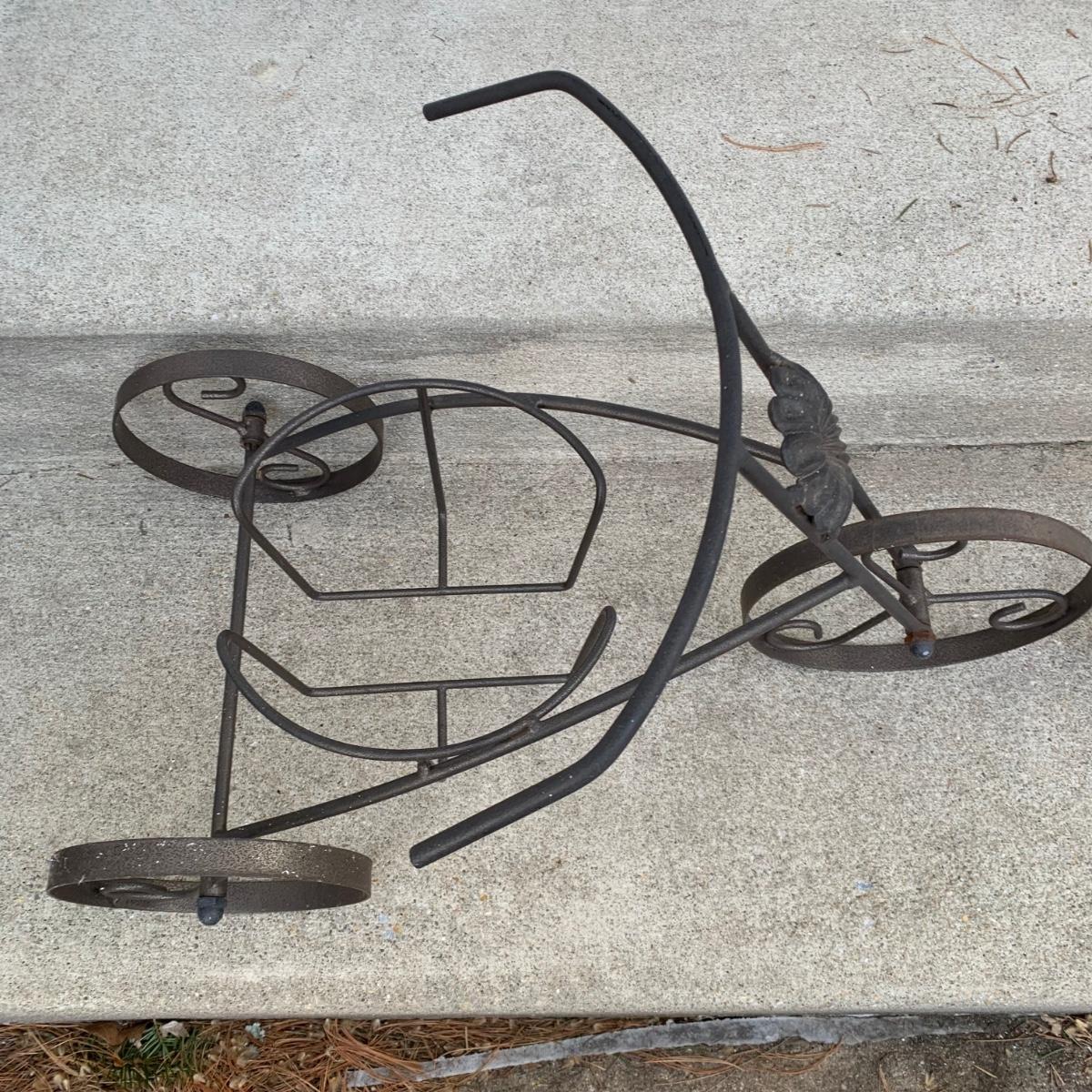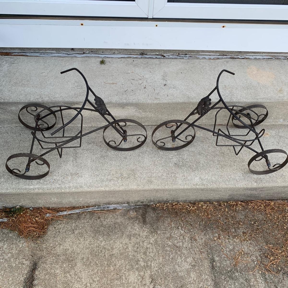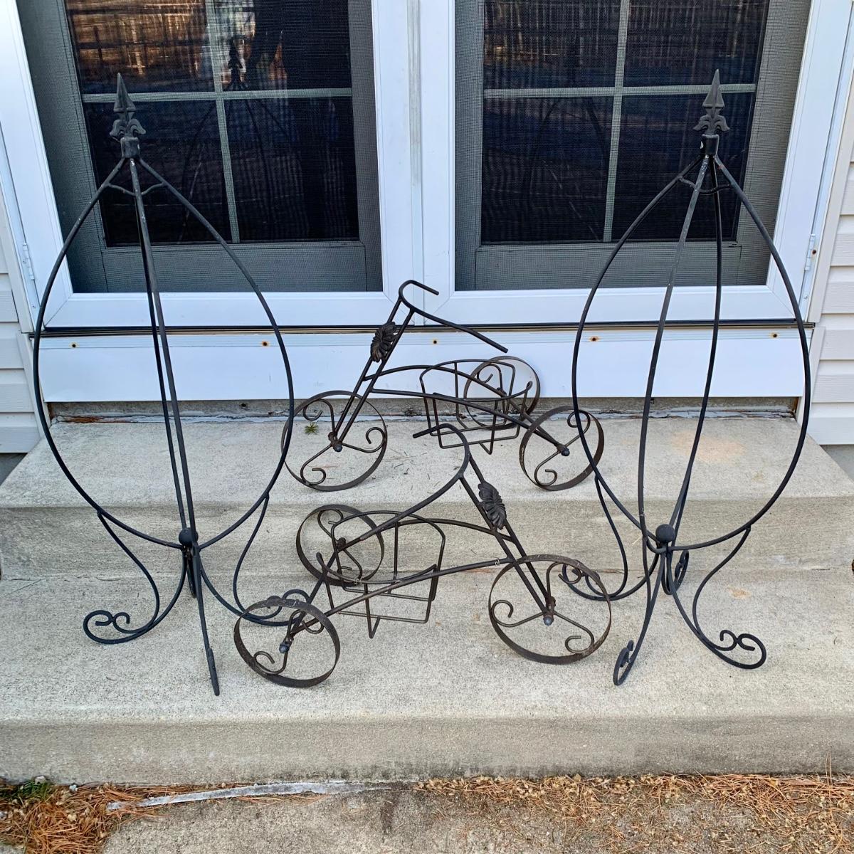 LOT 220 O: Wrought Iron Bicycle Plant Pot Holders & Hanging Plant Basket Lawn Decor