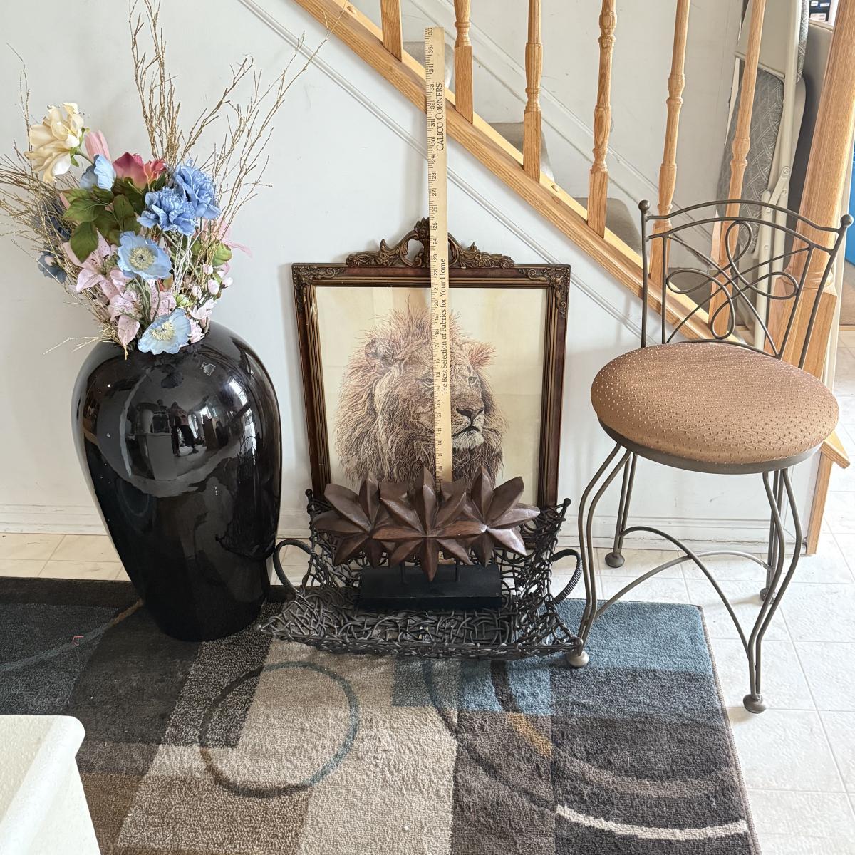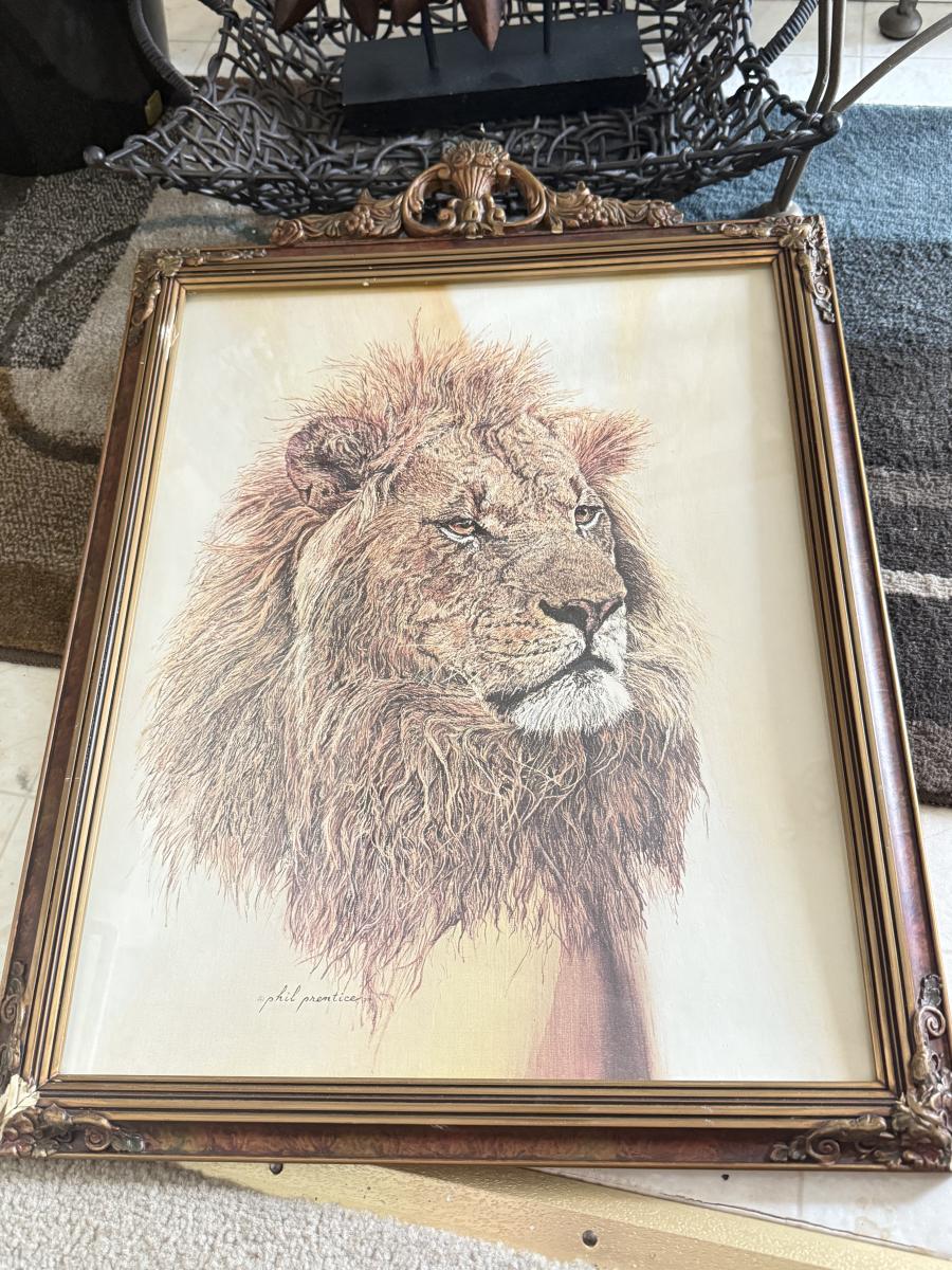 LOT 224B: Home Decor Collection: Large Haeger Vase, Vintage Phil Prentice Lion Print & More