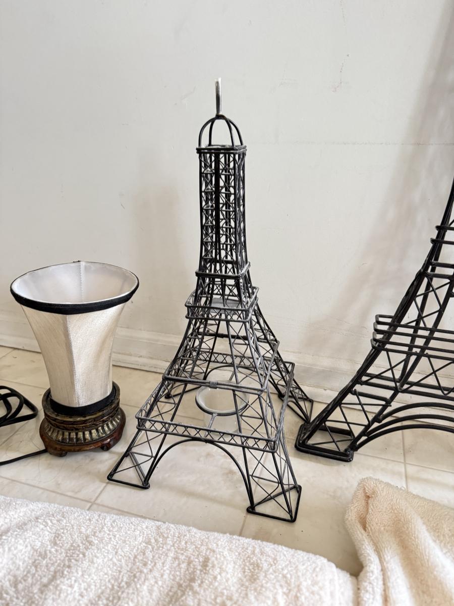 LOT 235L: Home Decor: Paris France Eiffel Towers, Lamps & Linens