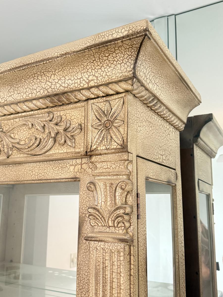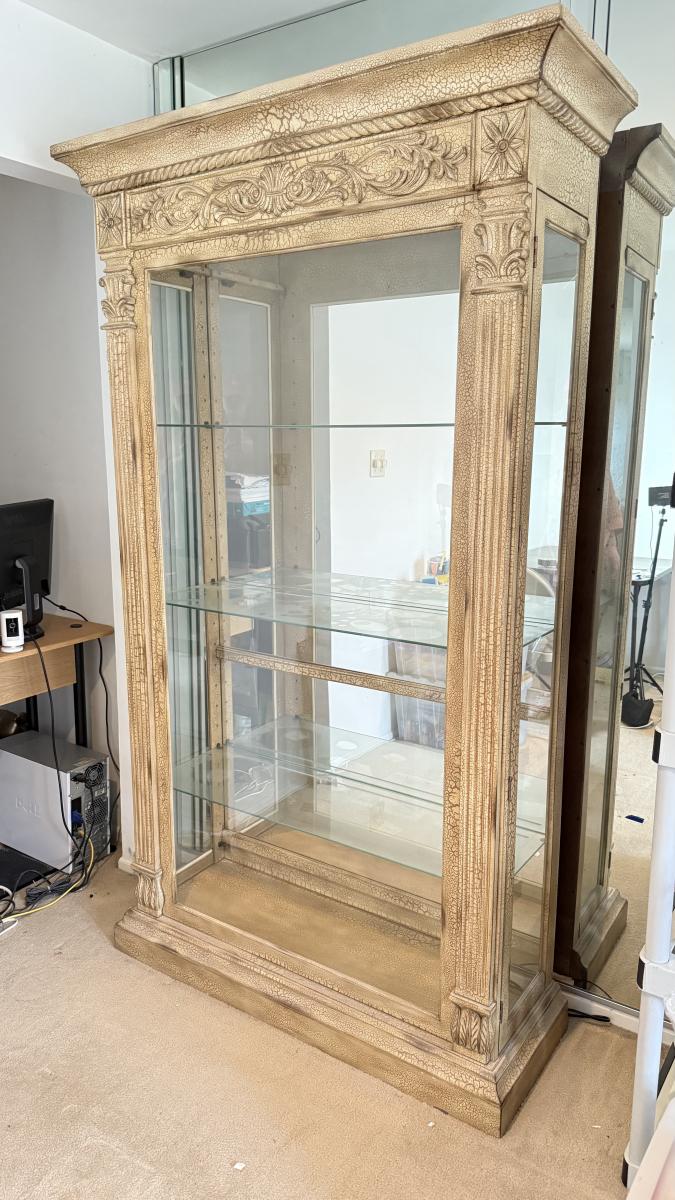 LOT 237A: Vintage Rustic Column Glass Shelf Curio Cabinet
