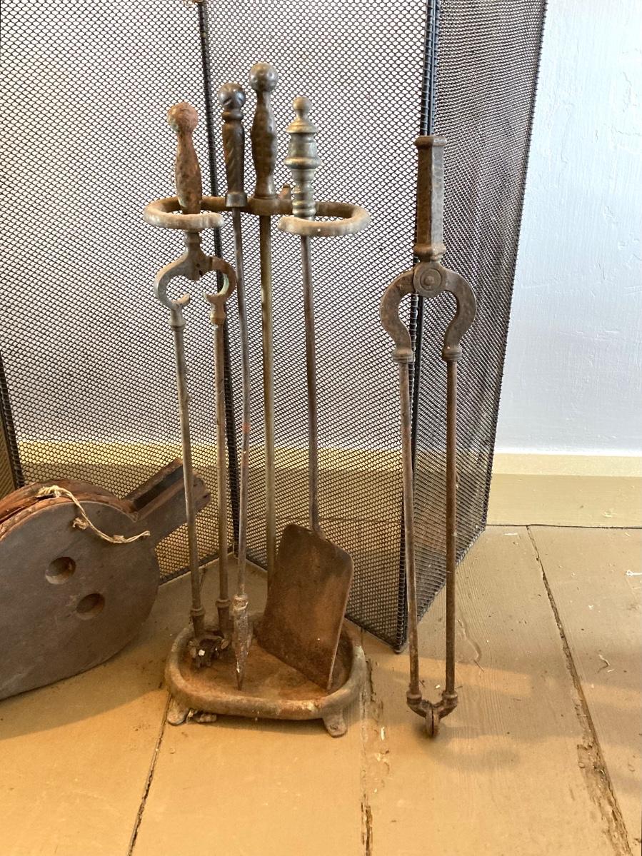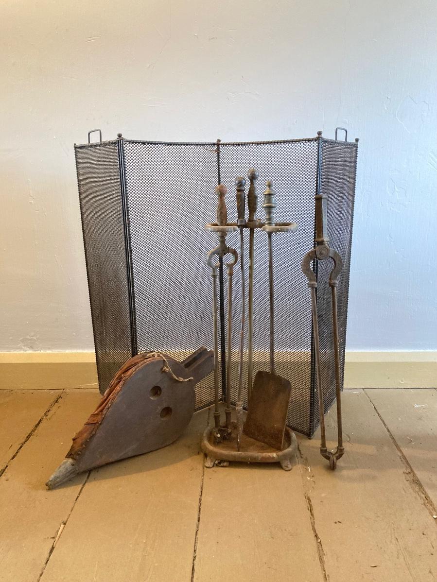 LOT 306: Antique / Vintage Fireplace Screen with Tools